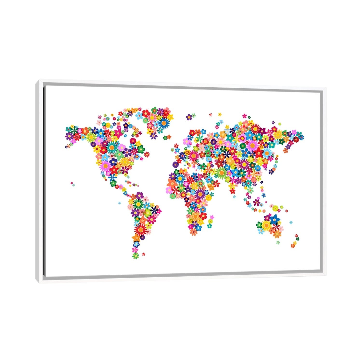 iCanvas "Flowers World Map" by Michael Tompsett Framed