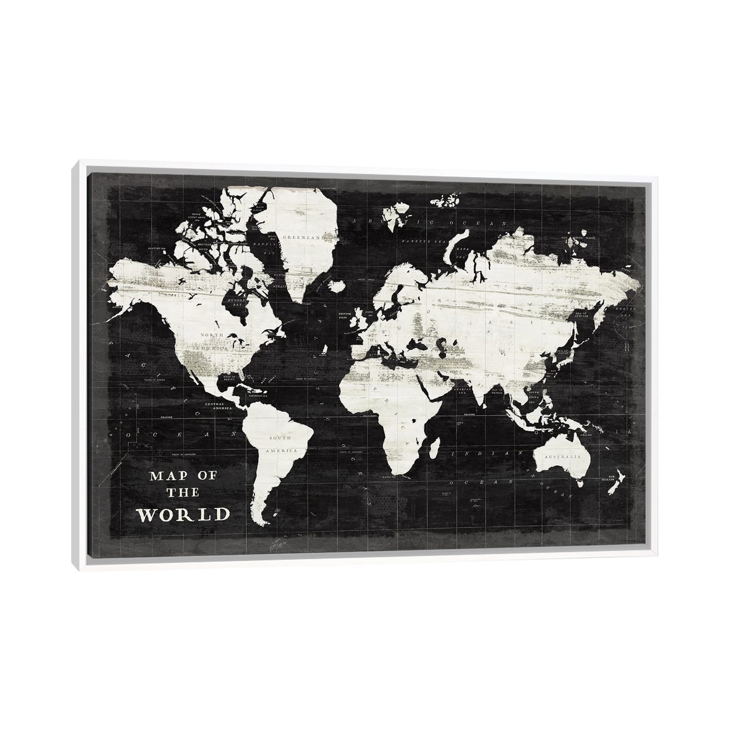 iCanvas "World Map Black" by Sue Schlabach Framed Canvas Print