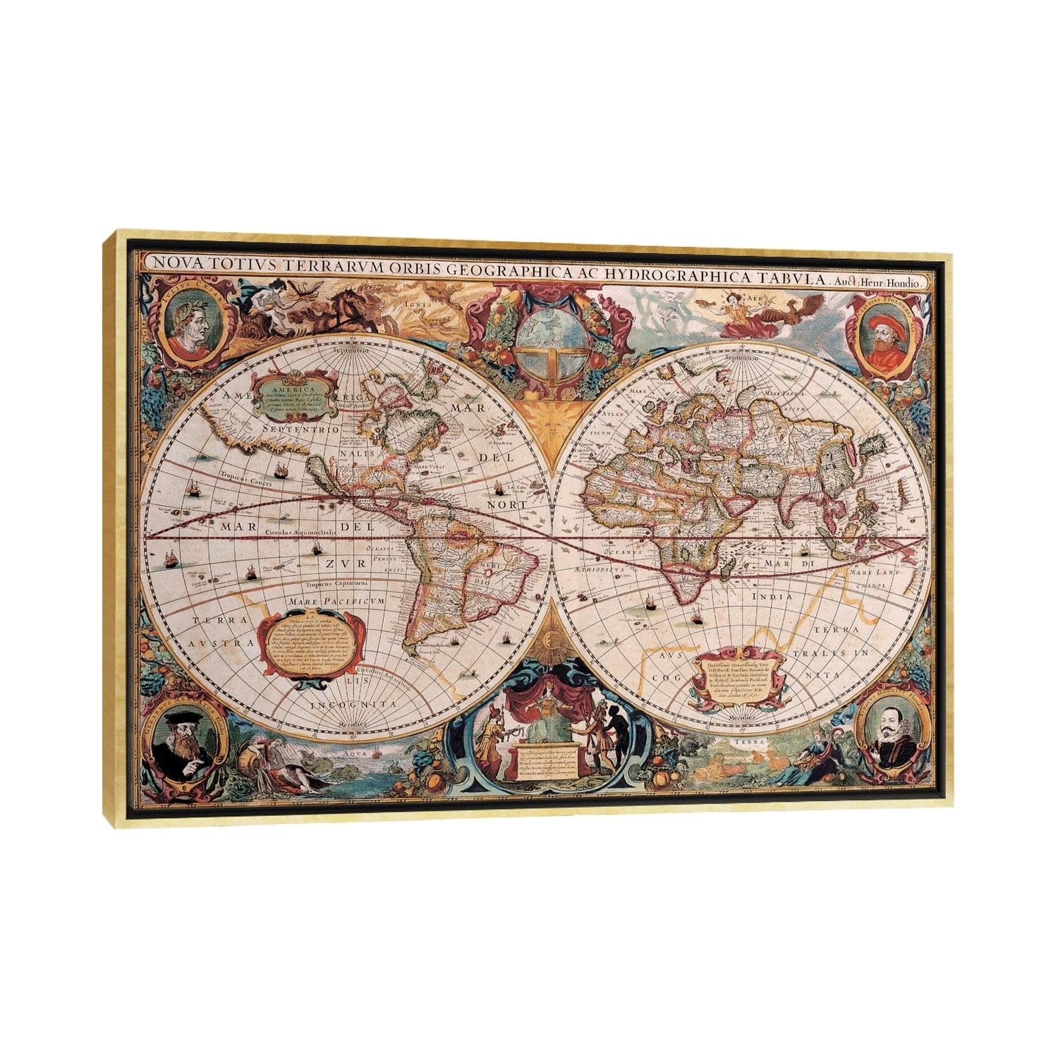 iCanvas "Antique World Map" by Henricus Hondius Framed Canvas Print