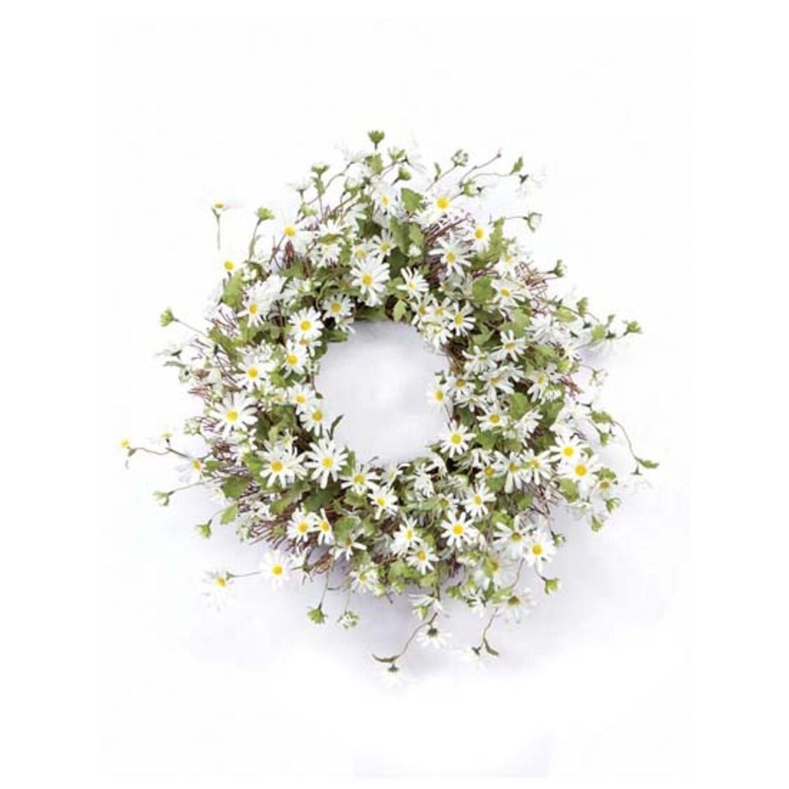 23" White and Green Daisy Artificial Christmas Wreath - Unlit