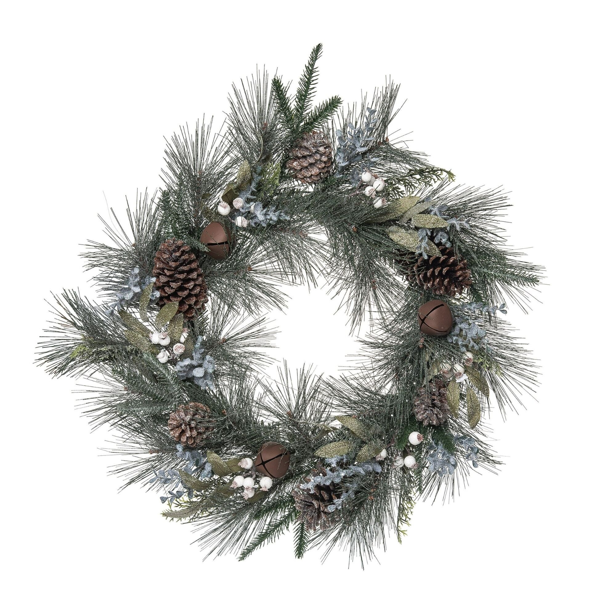 Mixed Greenery Artificial Christmas Wreath with Bells, 24-Inch, Unlit - Green