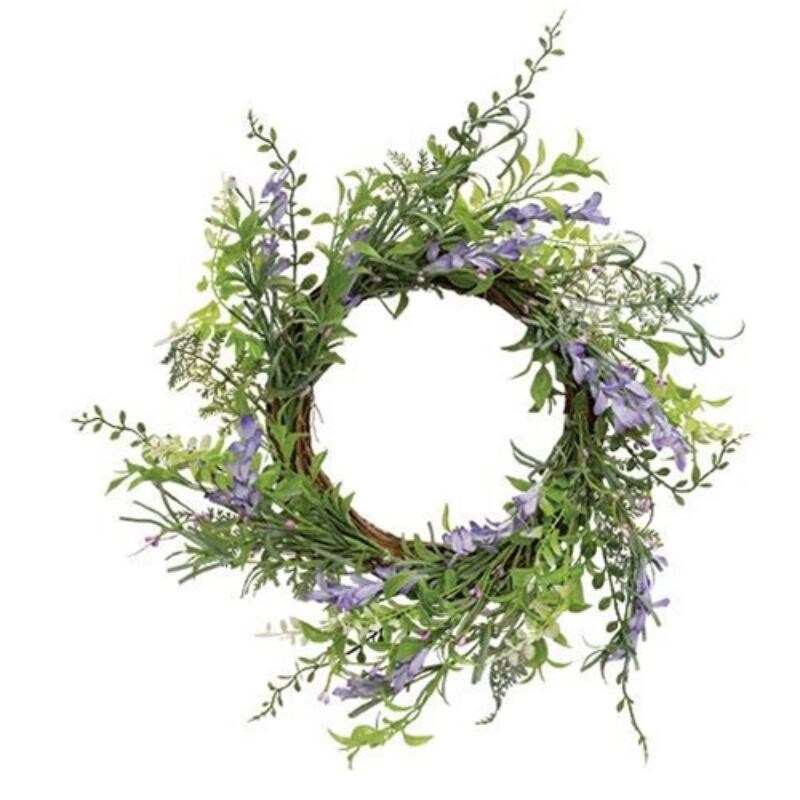 Green and Purple Lavender Herb Spring Floral Wreath, 10-Inch