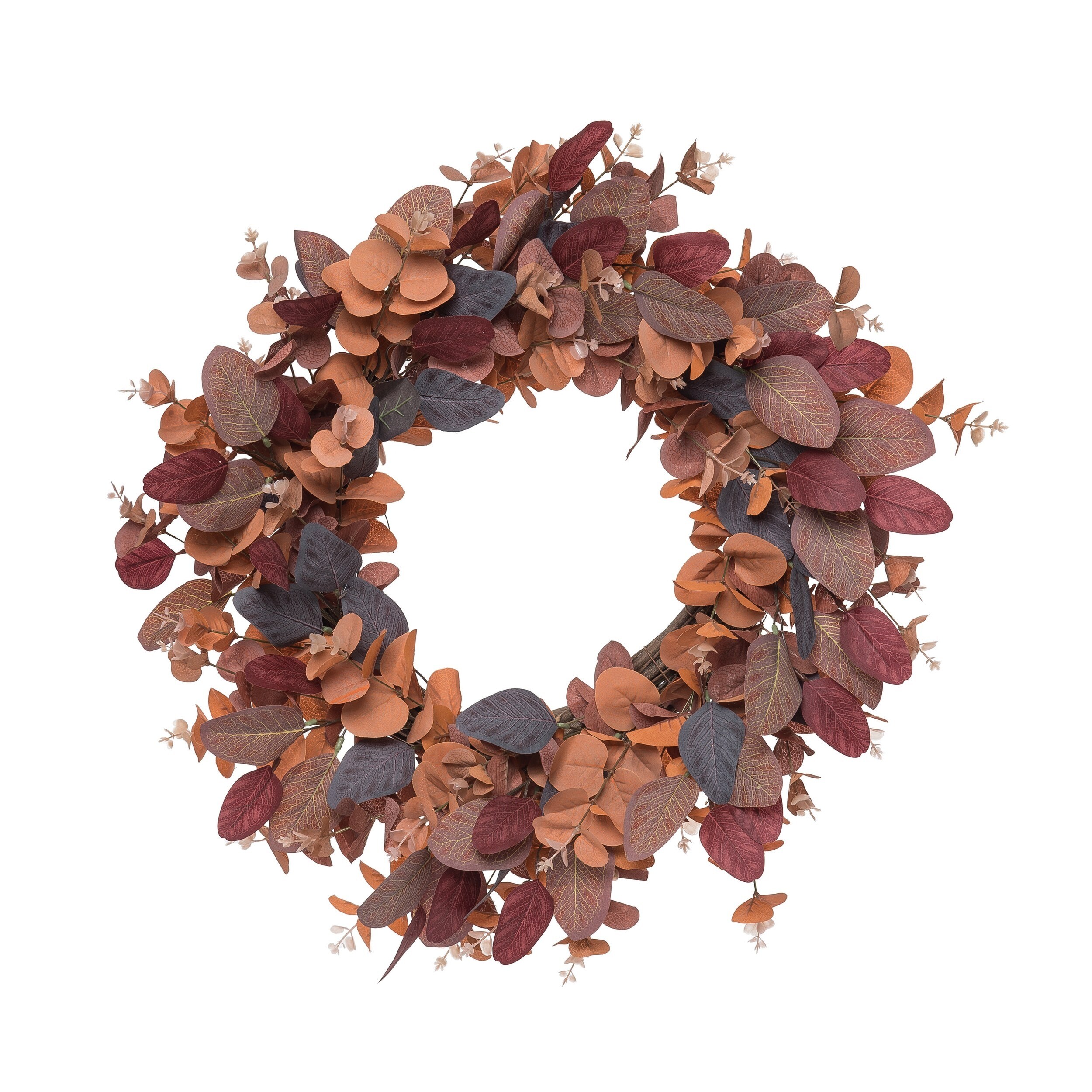 Transpac Fabric/Canvas 24 in. Multicolored Harvest Multi Color Eucalyptus and Floral Wreath