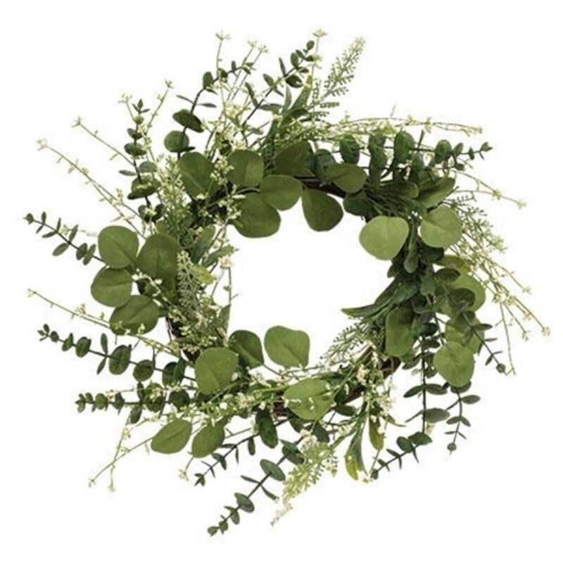 Baby's Breath & Lush Eucalyptus Wreath - 7.5" diameter (inner), 16-18" diameter (Outer)