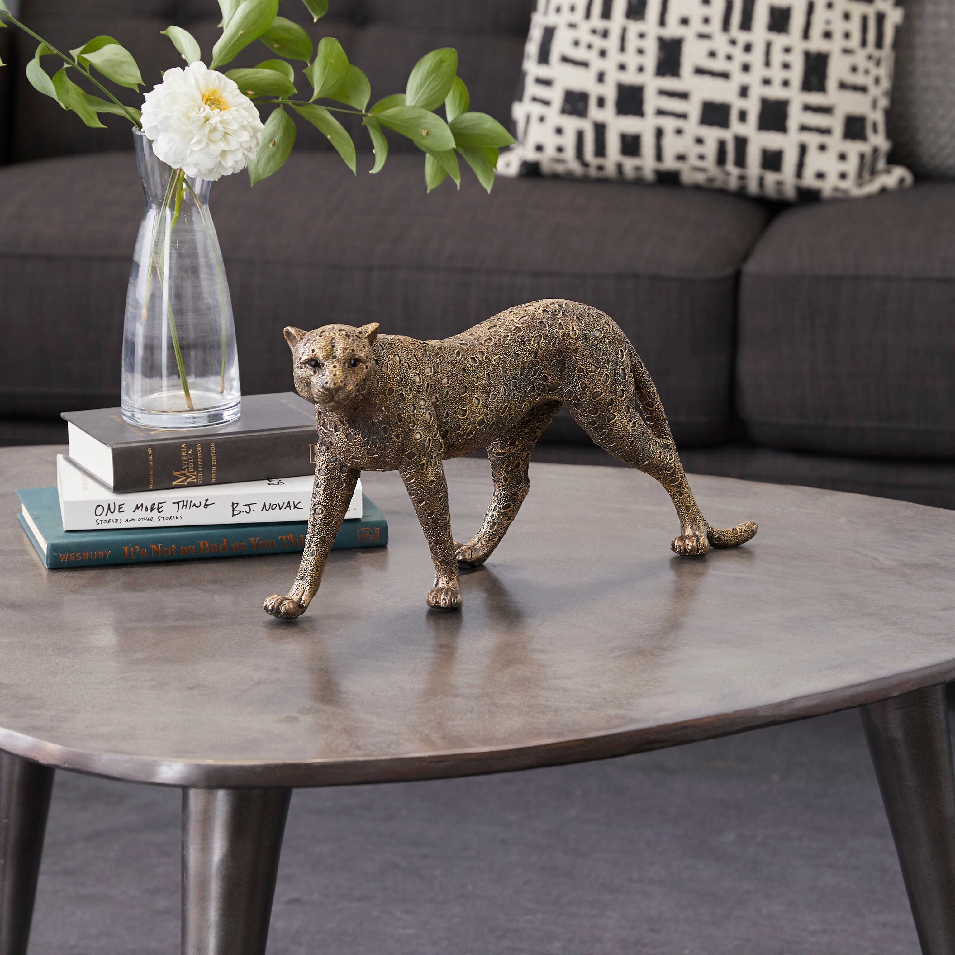 Gold Polystone Contemporary Sculpture Leopard 8 x 16 x 4 - 16 x 4 x 8