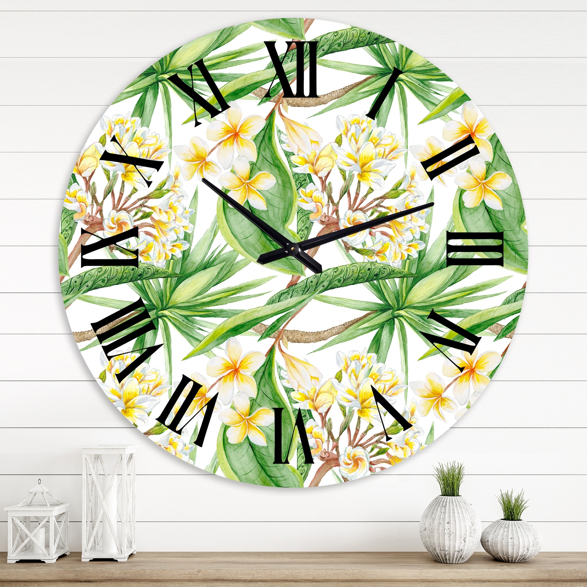 Designart 'Tropical Foliage and Yellow Flowers VI' Modern wall clock