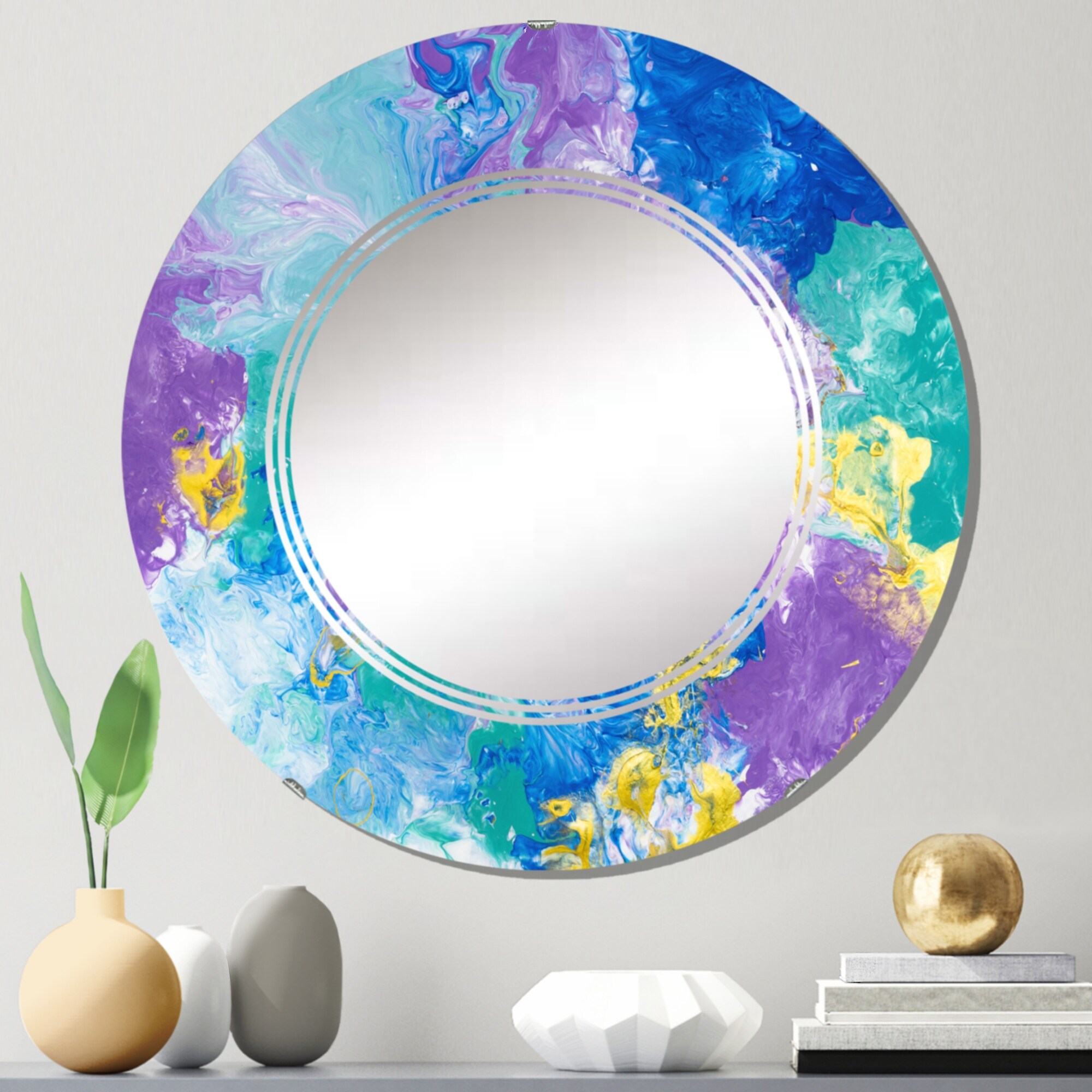 Designart 'Abstract Blue, Pruple and Yellow' Printed Modern Wall Mirror