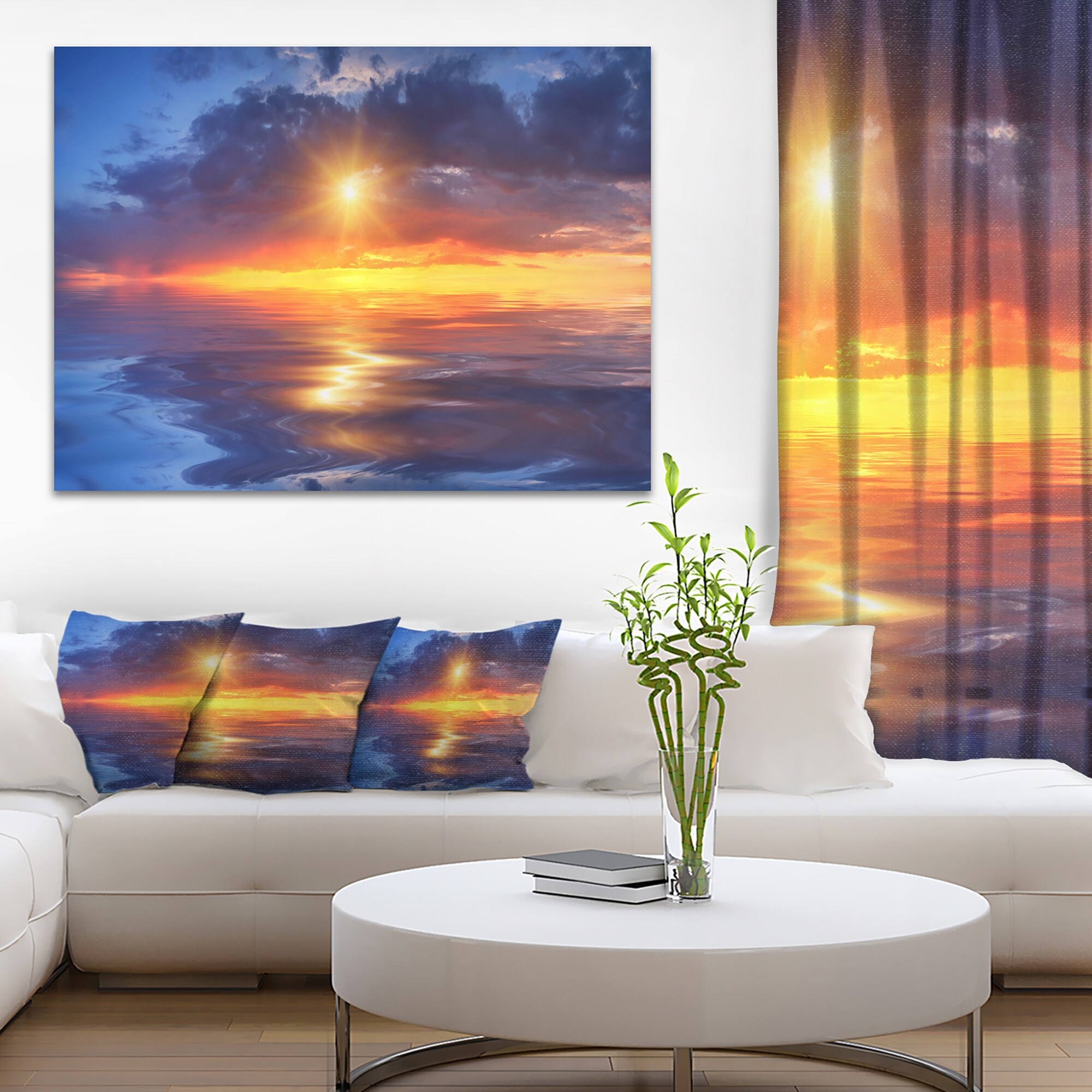 Cloudy Sunset Reflection in Lake - Skyscape Canvas Print - Yellow