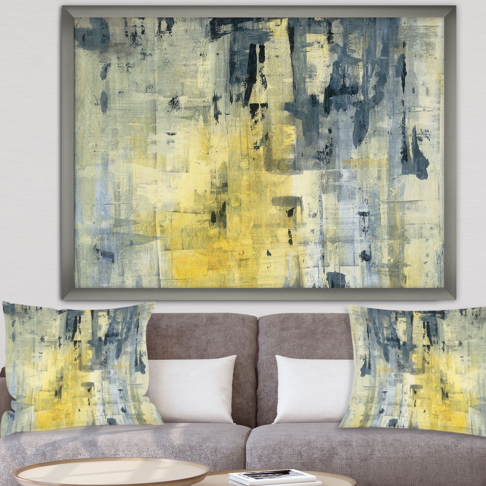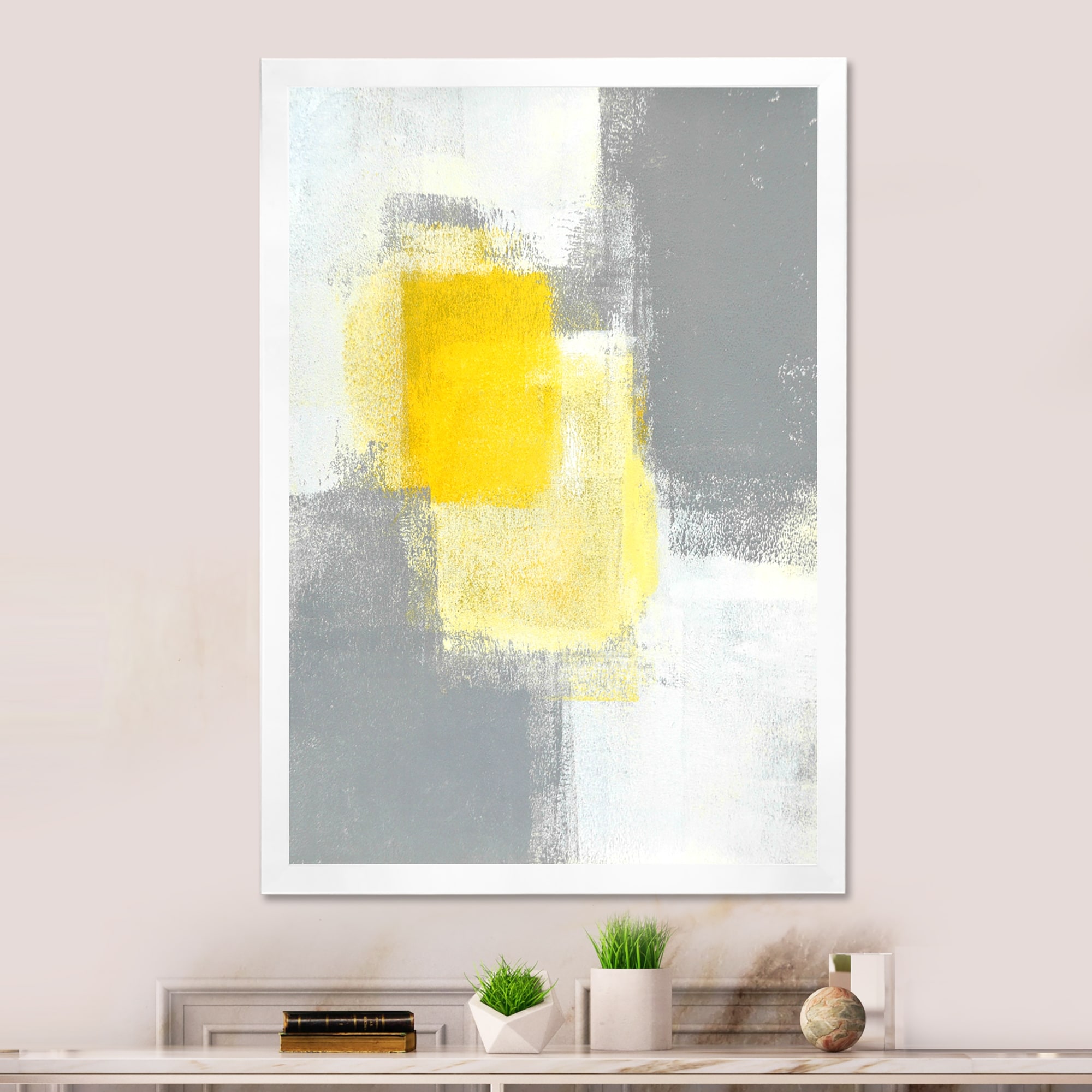 Designart "Colorfields In Shades of Grey And Yellow V" Modern Framed Wall Decor