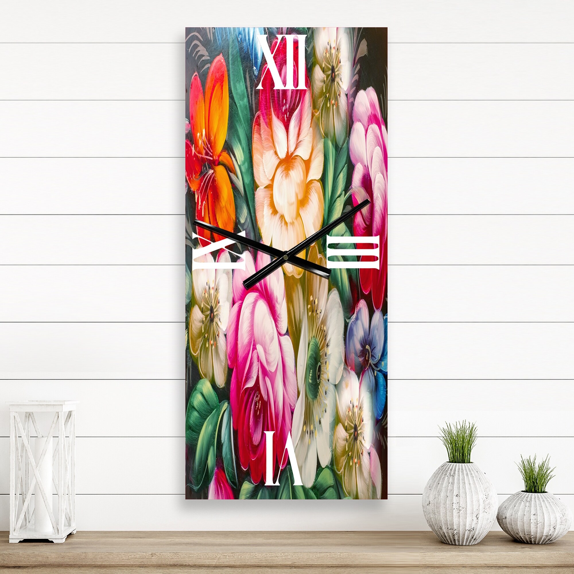 Designart 'Vintage VIbrant Red & Yellow Flower Still Life II' Traditional Wall Clock Decor