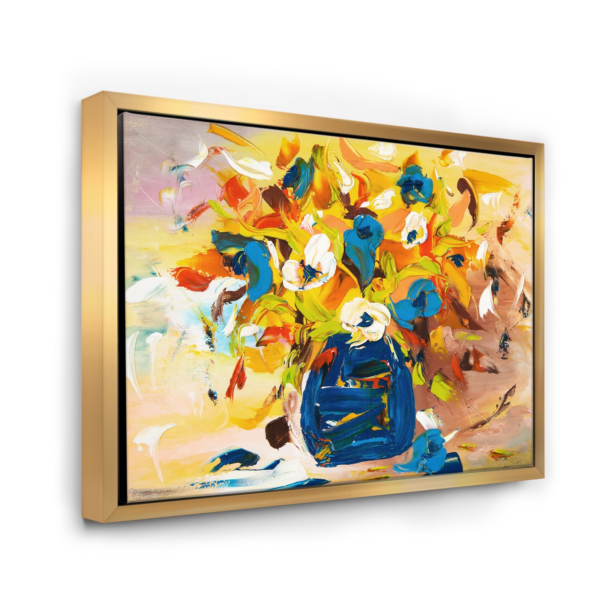 Designart "A VIbrant Flower Bouquet in Yellow and Blue" Traditional Framed Canvas Wall Art Print