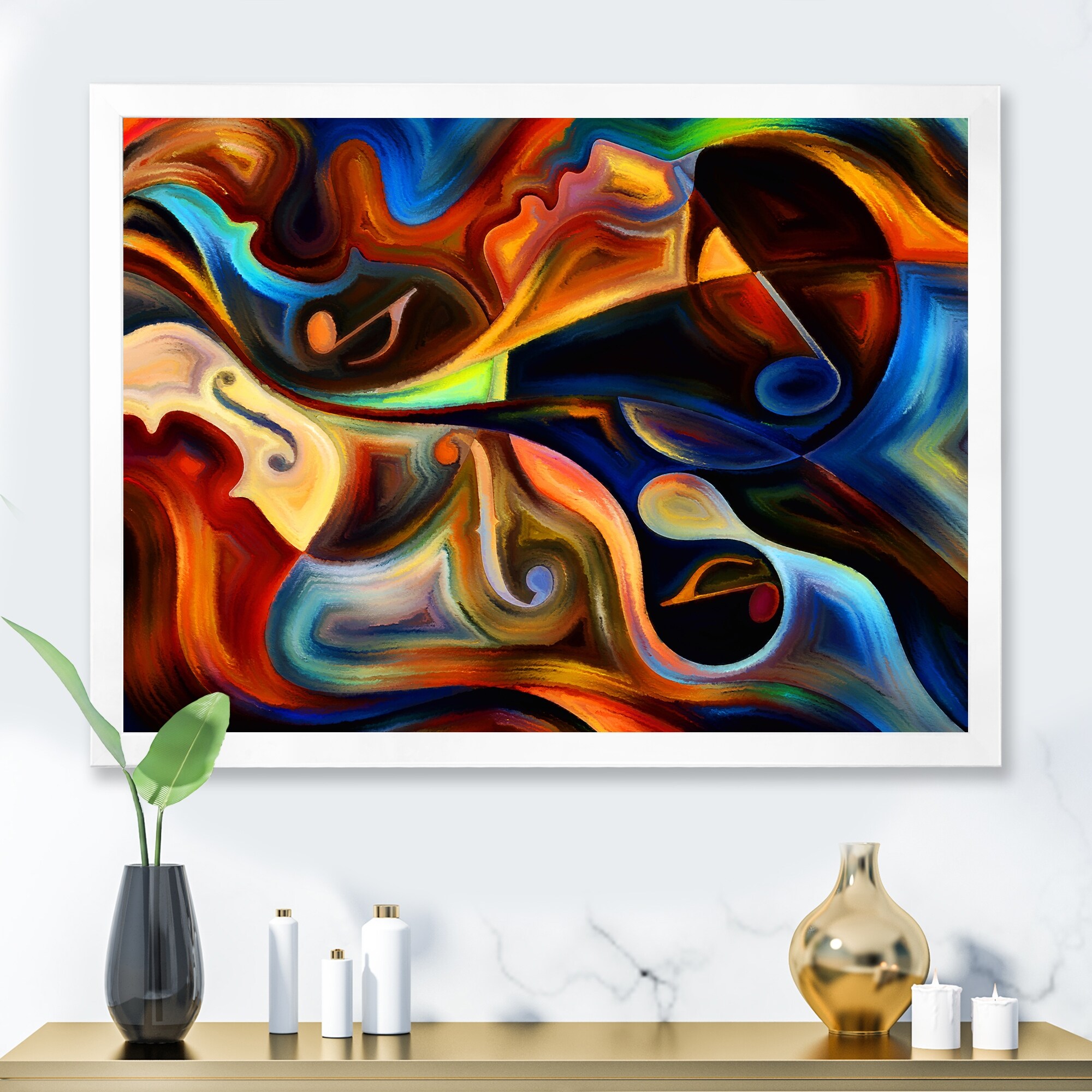 Designart "Blue Orange And Yellow Dynamics on Black" Modern Framed Art Print