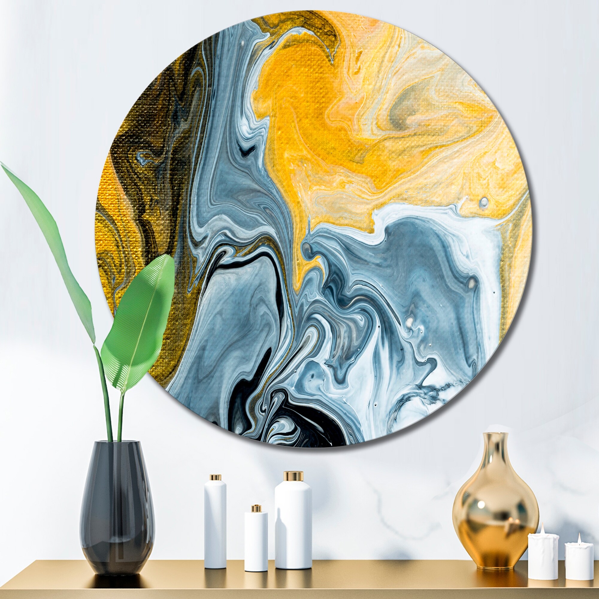 Designart 'Black White And Yellow Marble Abstract II' Modern Metal Circle Wall Art