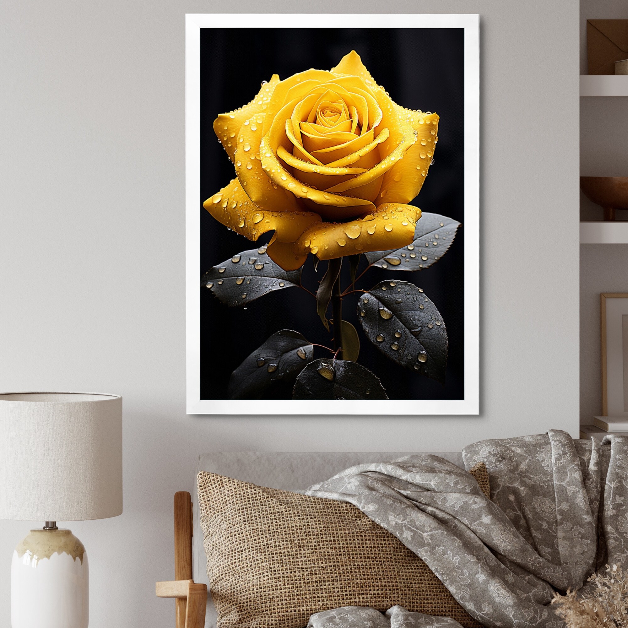 Designart "Yellow Black Rose Elegance III" Roses Framed Canvas Wall Art