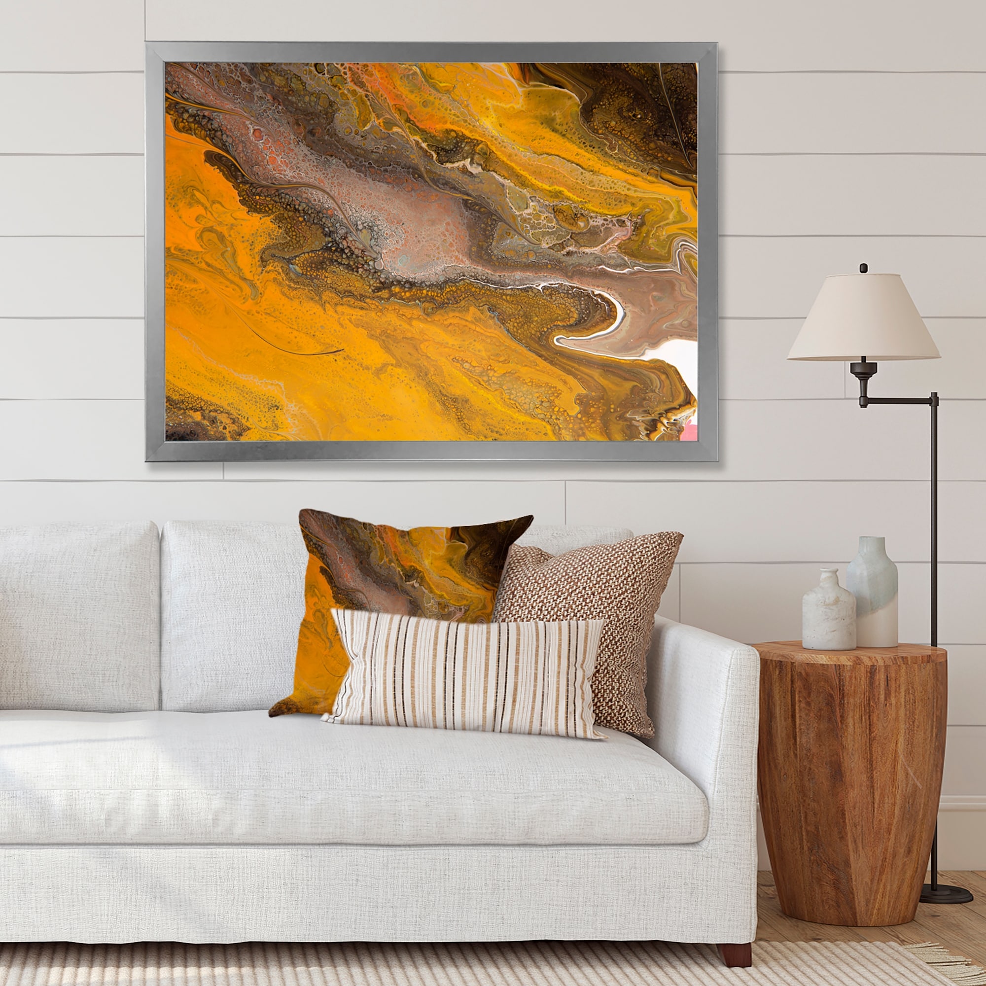 Designart "Grey River in Yellow Marble Landscape" Modern Framed Art Print