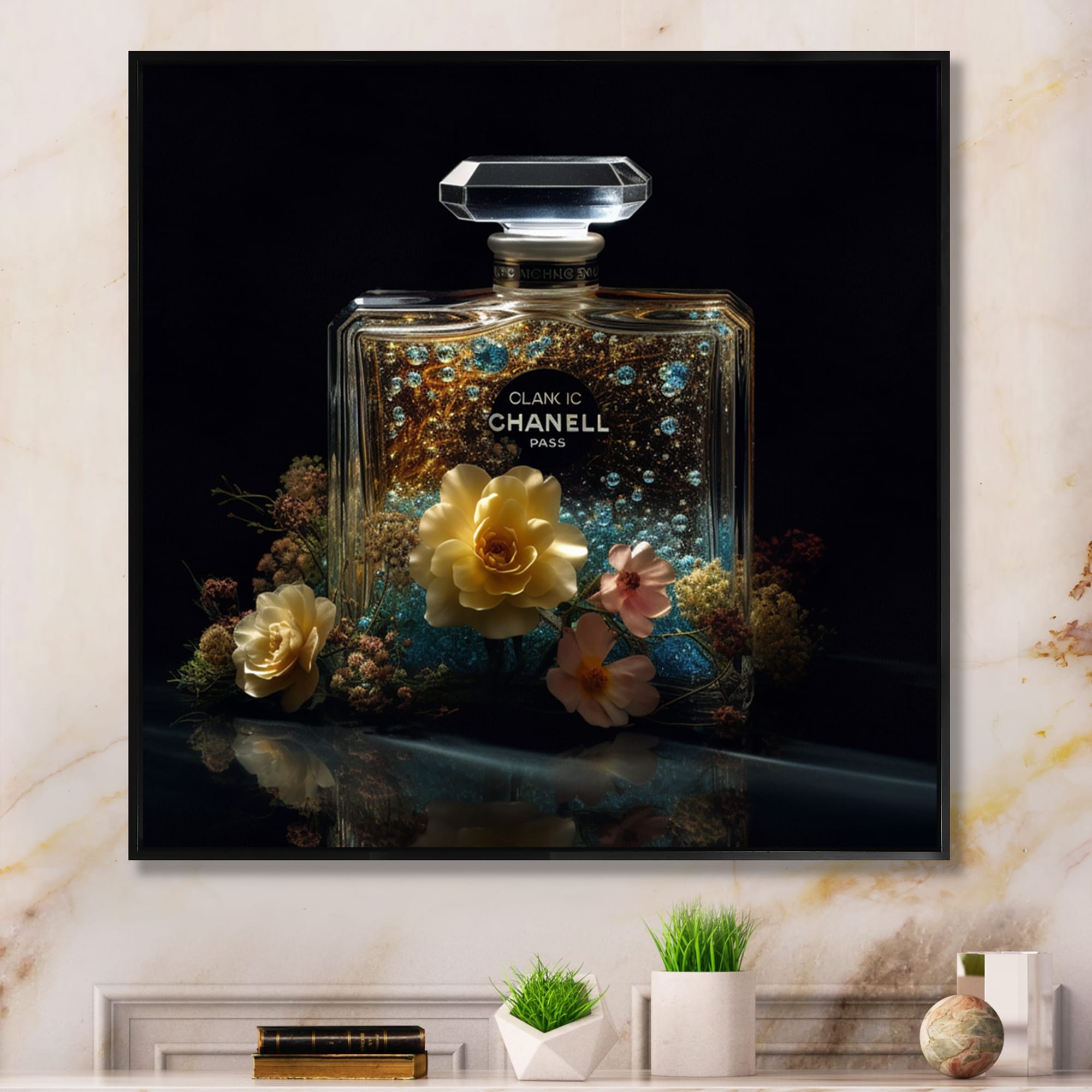 Designart "Yellow Perfume Fragrance Connoisseur" Fashion Perfume Framed Canvas Wall Art