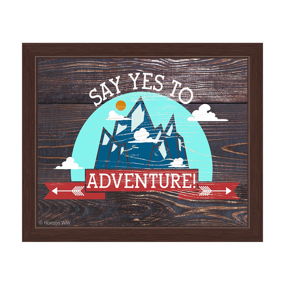 Say Yes to Adventure' Red Canvas Espresso Finish Framed Graphic Wall Art
