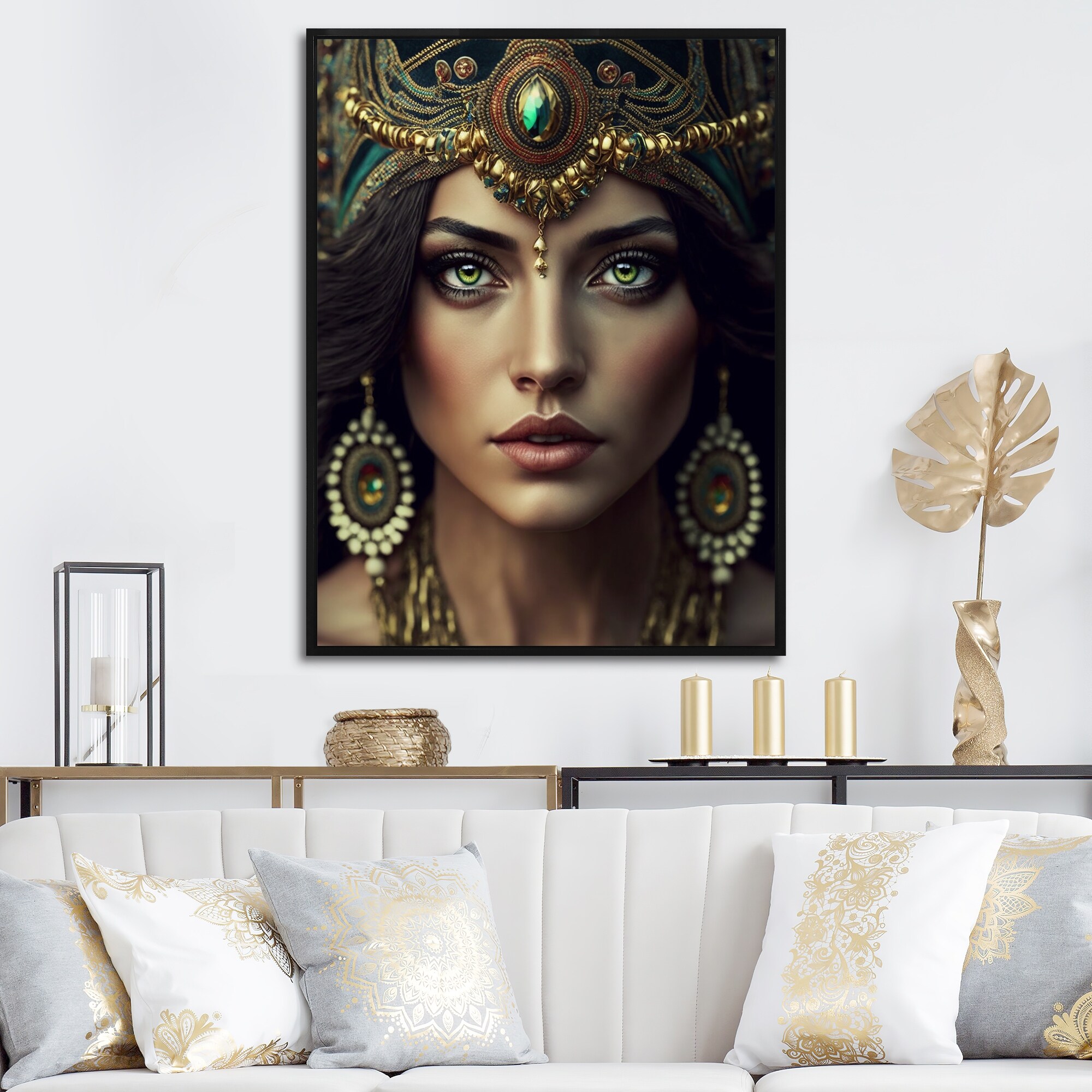 Designart "Bohemian Woman With Green Eyes II" Boho Woman Framed Canvas Wall Art