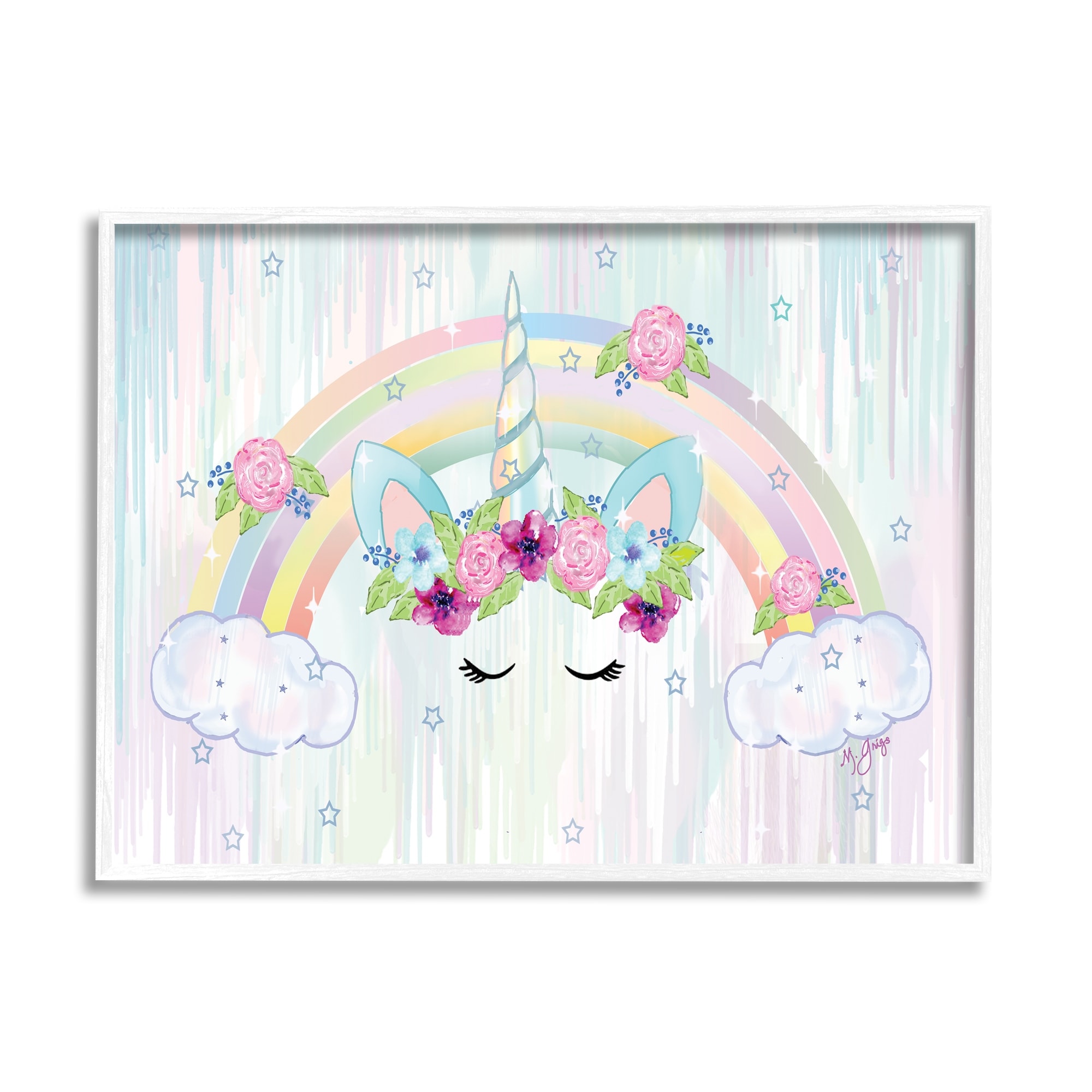 Stupell Unicorn Eyes Under Floral Rainbow Starry Clouds Framed Wall Art