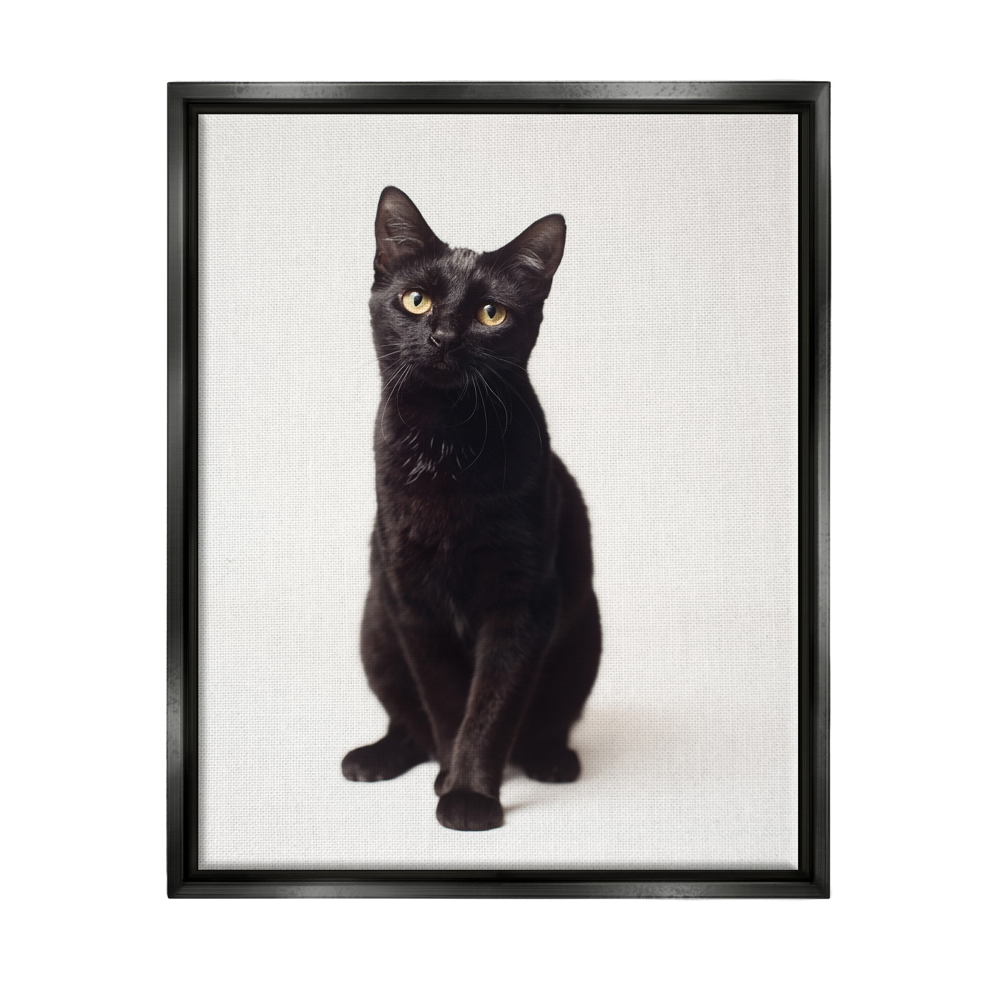 Stupell Industries Cute Black Cat Expressive Eyes Pet Portrait Floater Frame - White
