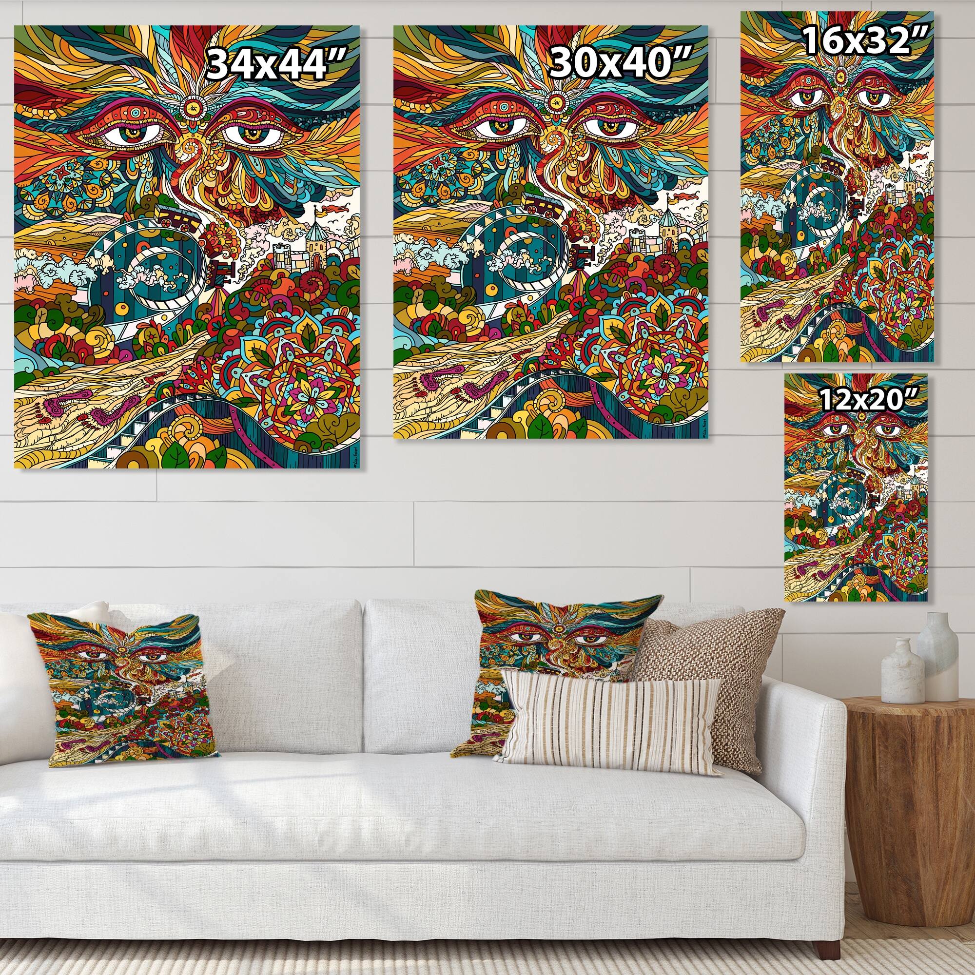 Designart "Buddhist Symbol Eyes of the All Seeing God" Bohemian & Eclectic Canvas Wall Art Print