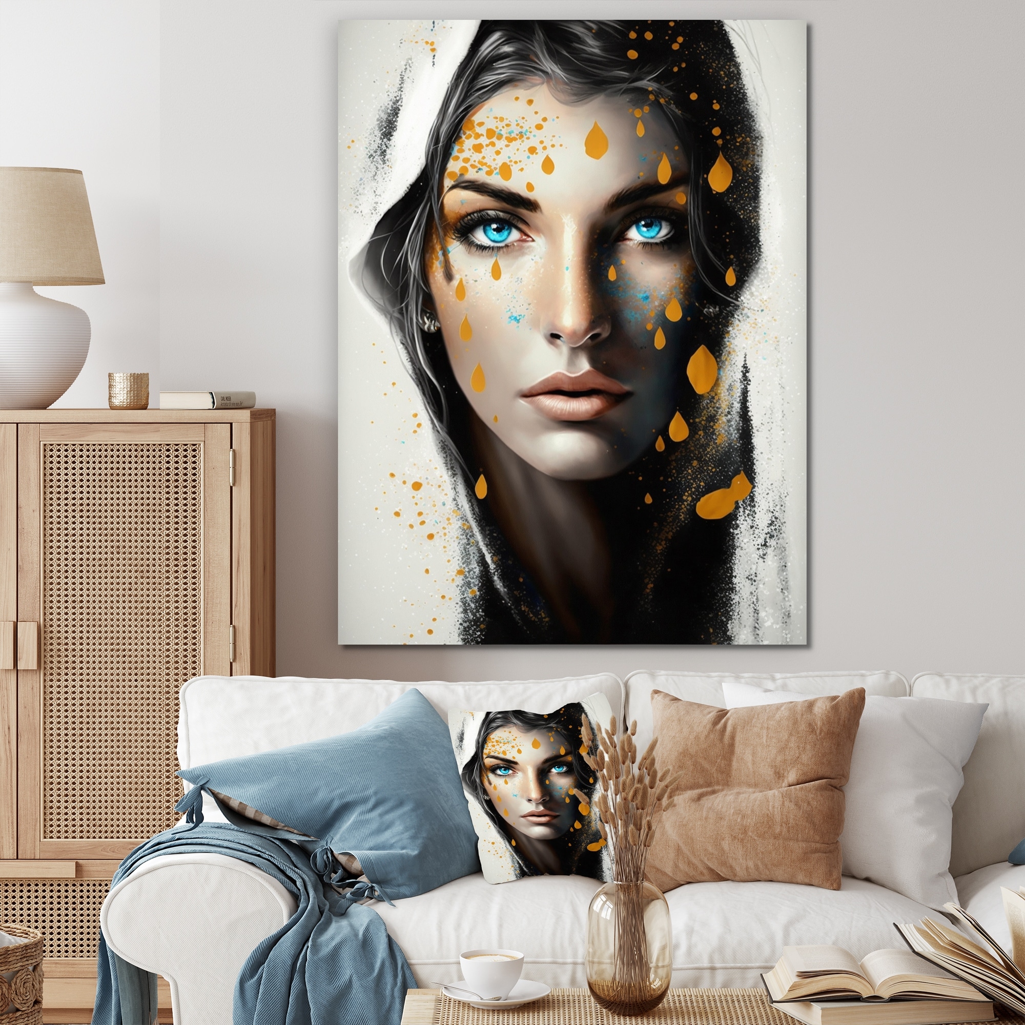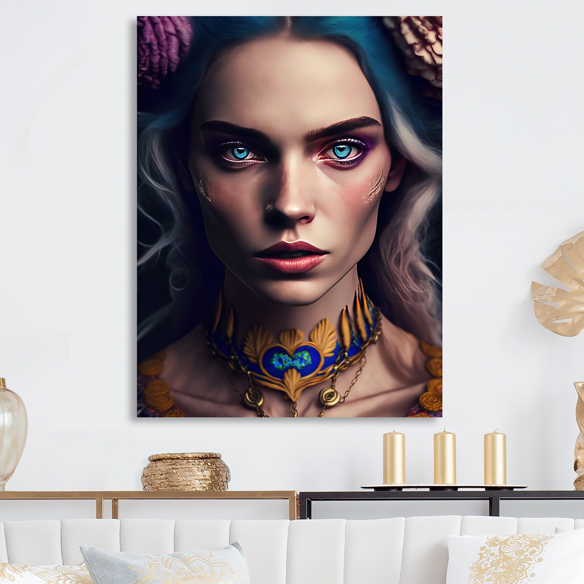 Designart "Bohemian Woman With Blue Eyes VIII" Boho Woman Framed Canvas Wall Art
