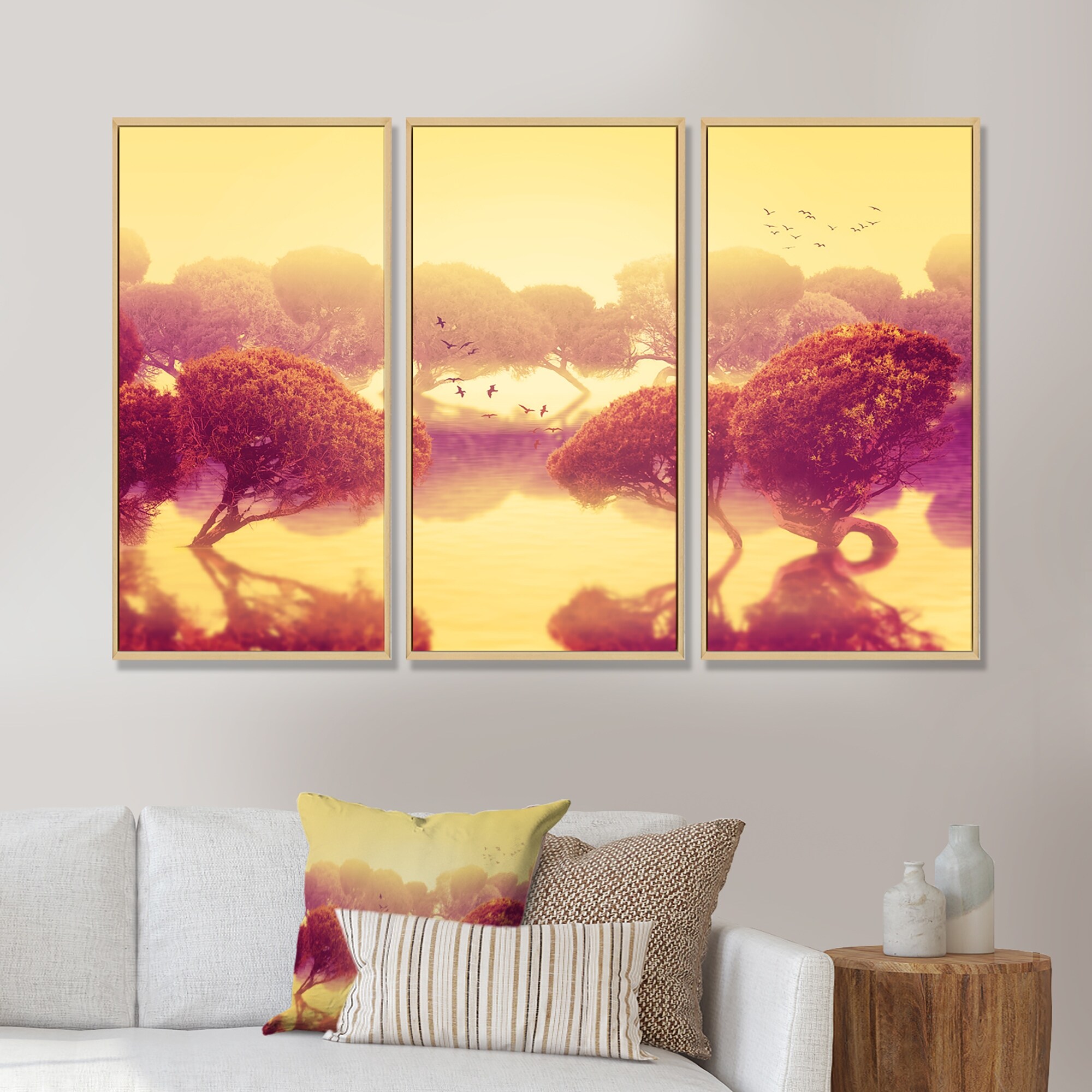 Designart "Peaceful Japanese Gardens" Landscape Framed Canvas Wall Art Set of 3 - 4 Colors of Frames