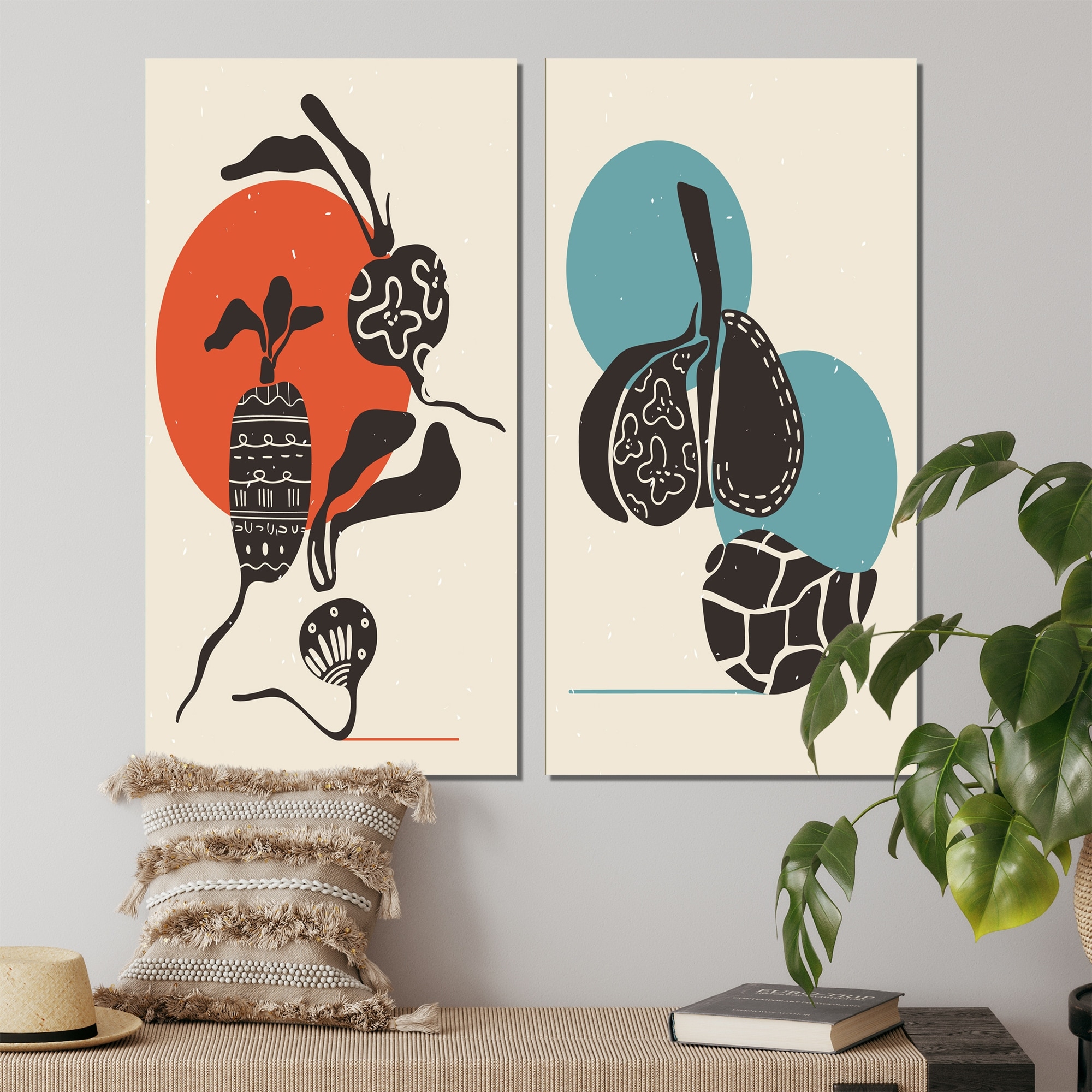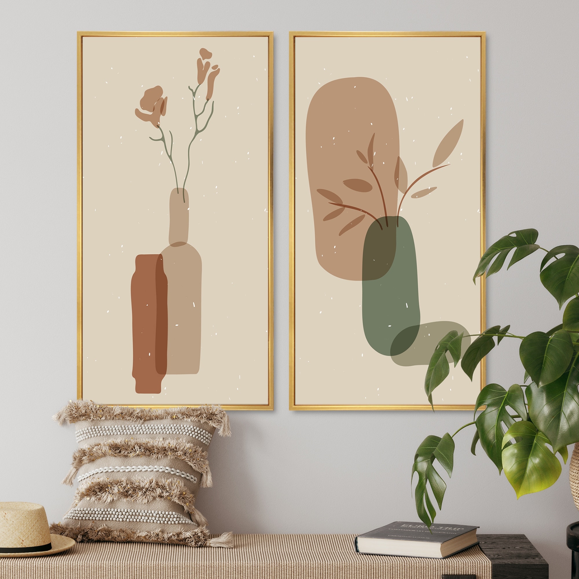 Designart "Japanese Vintage Creative Leaves IV" Abstract Framed Art Set of 2 Pieces