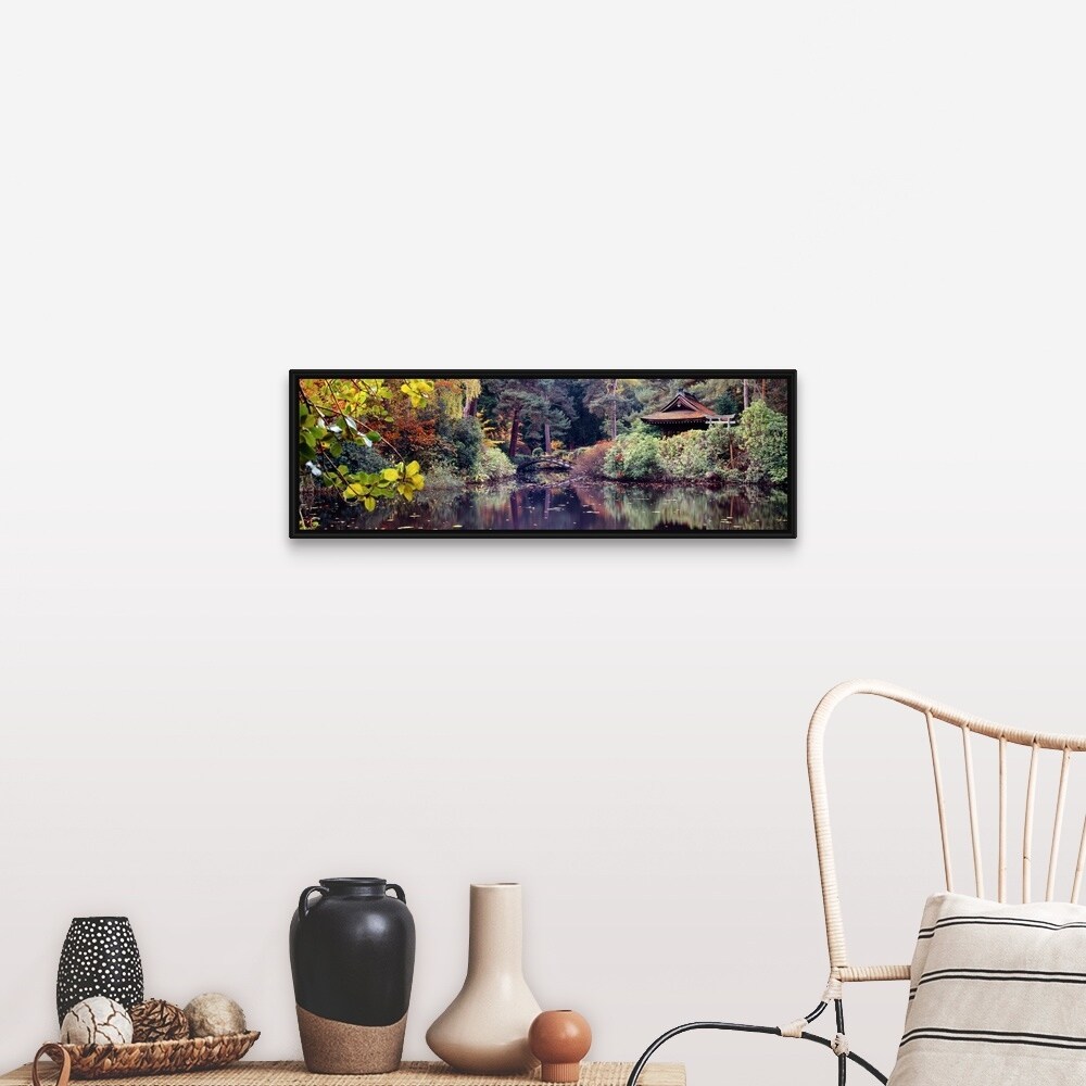"Japanese Garden in autumn, Tatton Park, Cheshire, England" Black Float Frame Canvas Art