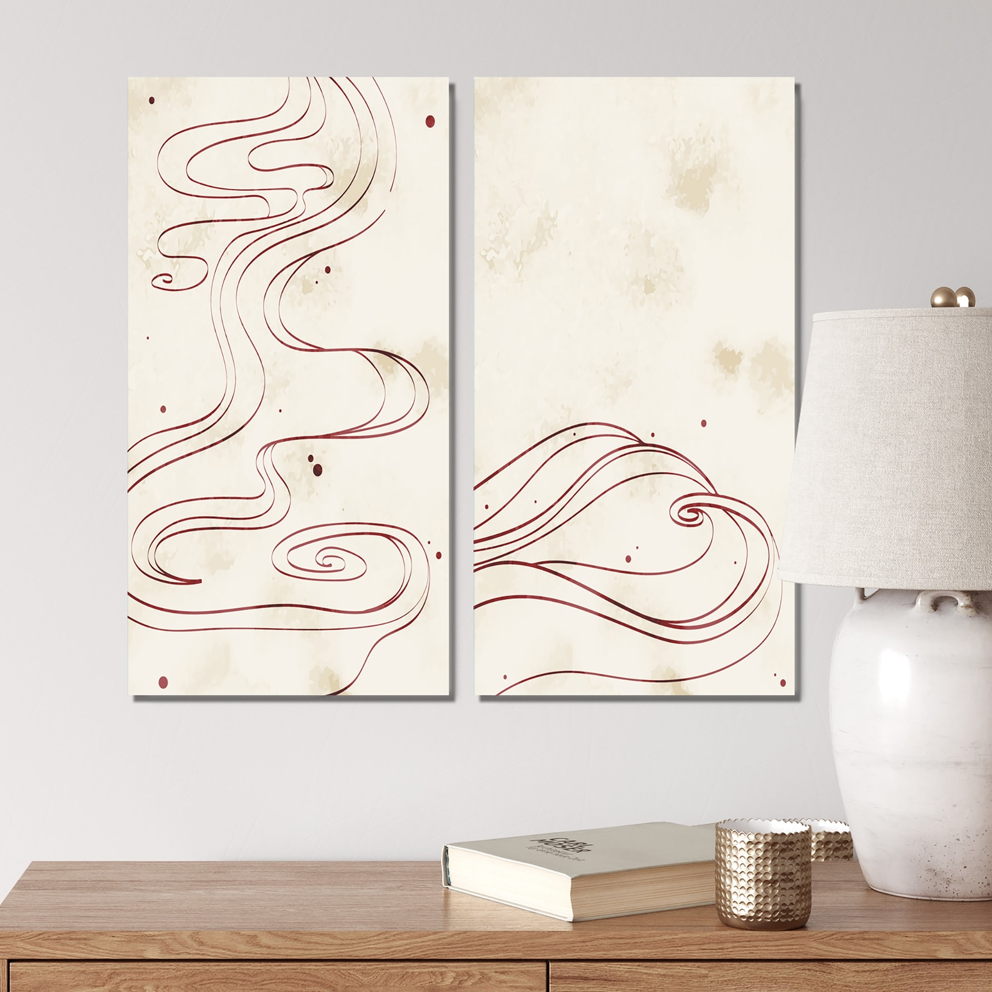 Designart 'Japanese Vintage Grunge Doodles I' Abstract Set of 2 Pieces