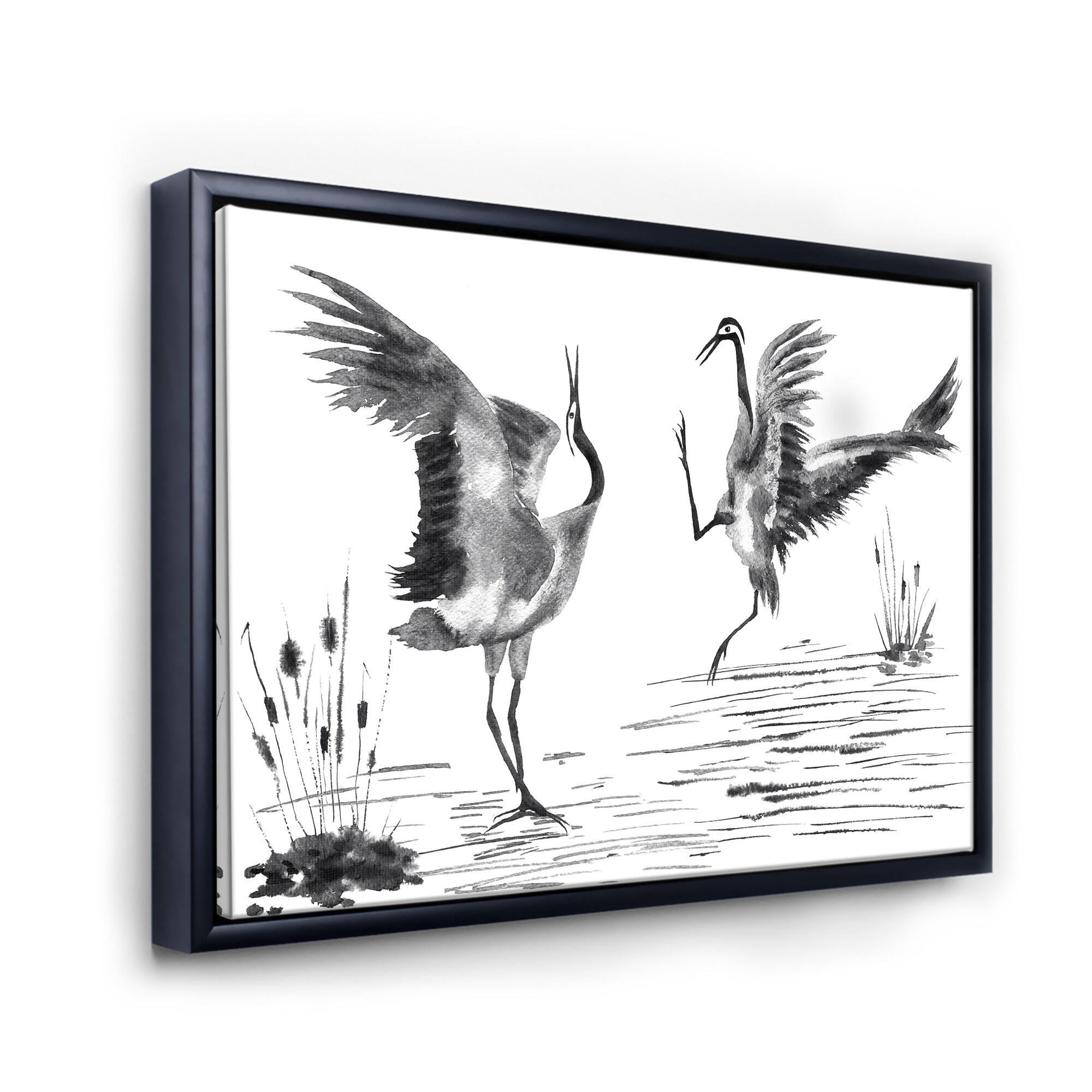 Designart "Two Enamored Japanese Cranes Birds" Traditional Framed Canvas Wall Art Print