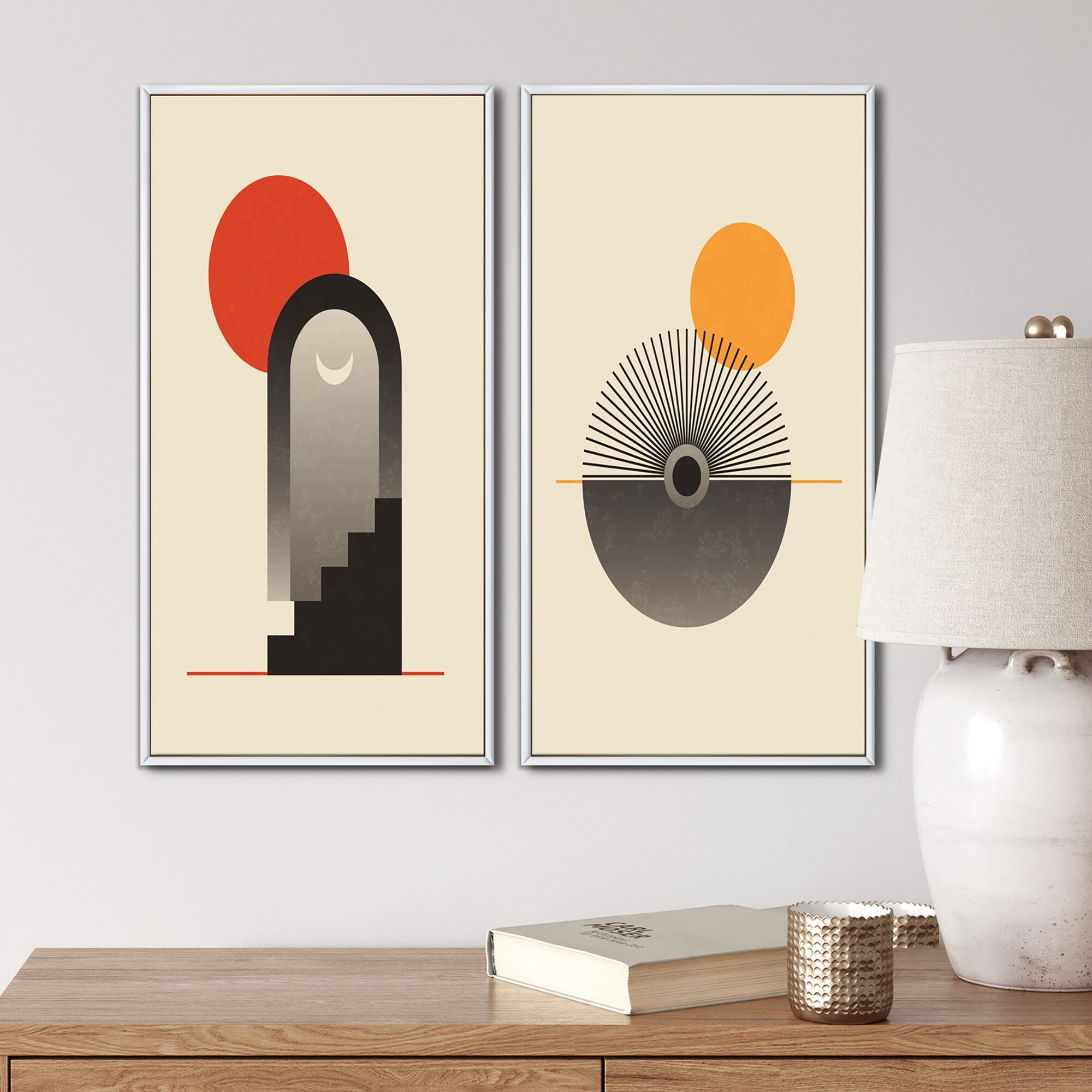 Designart "Japanese Geometric Vintage Designs II" Geometric Framed Art Set of 2 Pieces