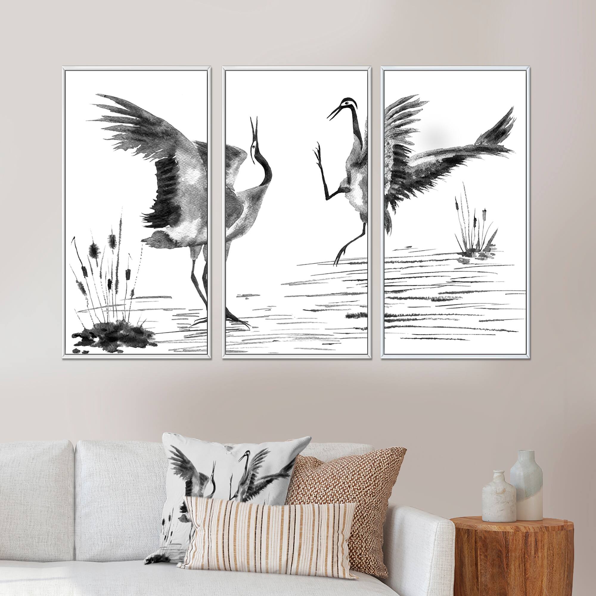 iCanvas "Wildlife Botanical Japanese Cranes" by Lola Design Framed Canvas Print