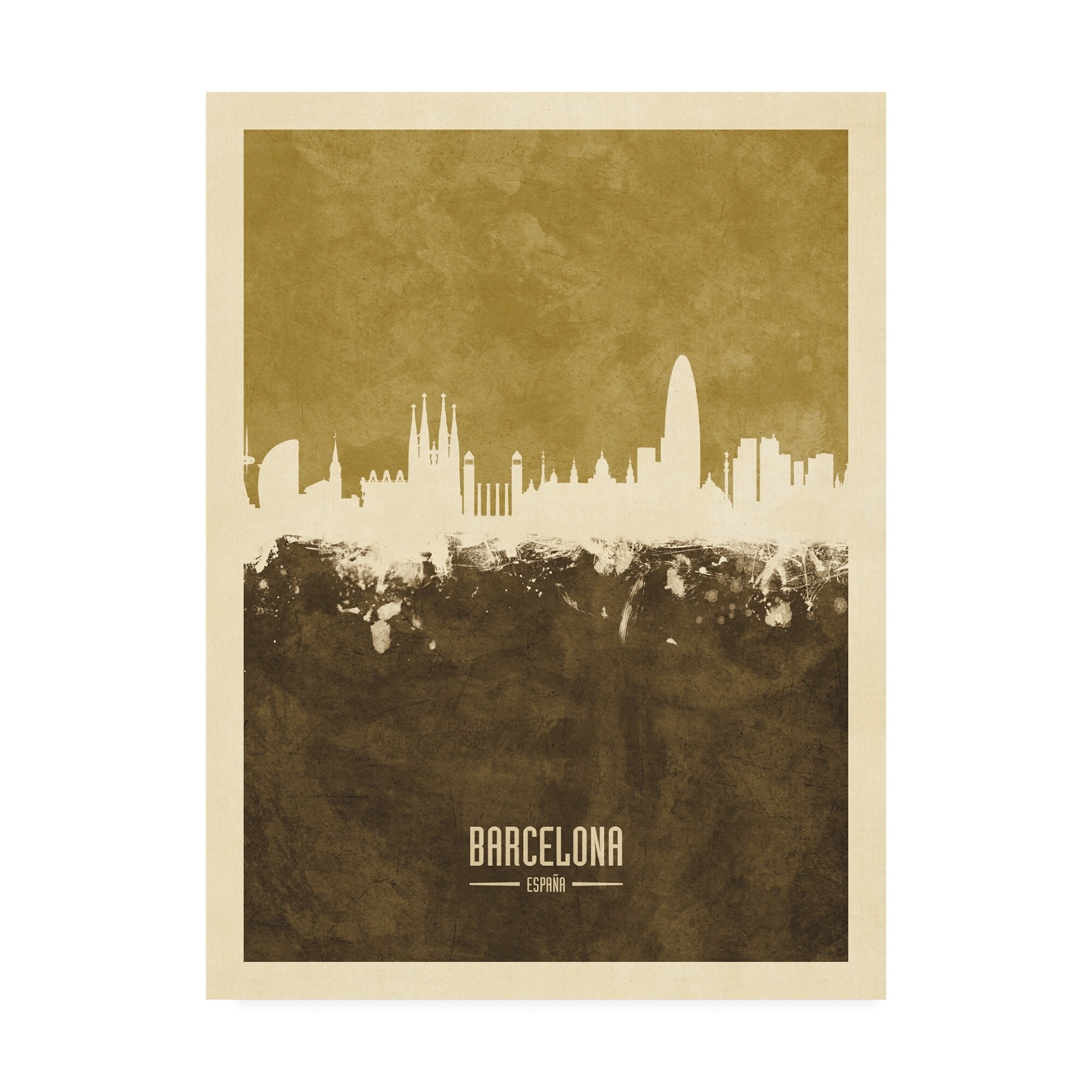 Michael Tompsett 'Barcelona Spain Skyline Brown' Canvas Art