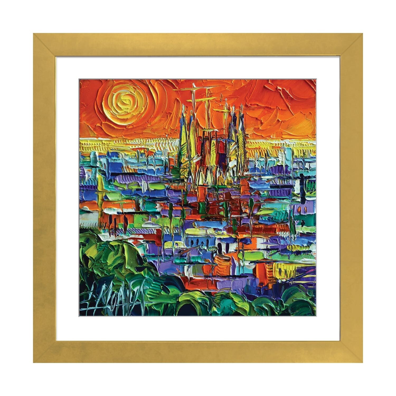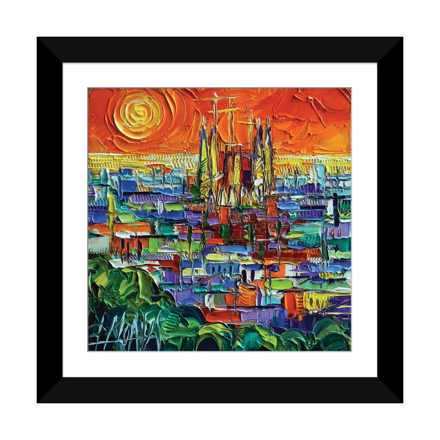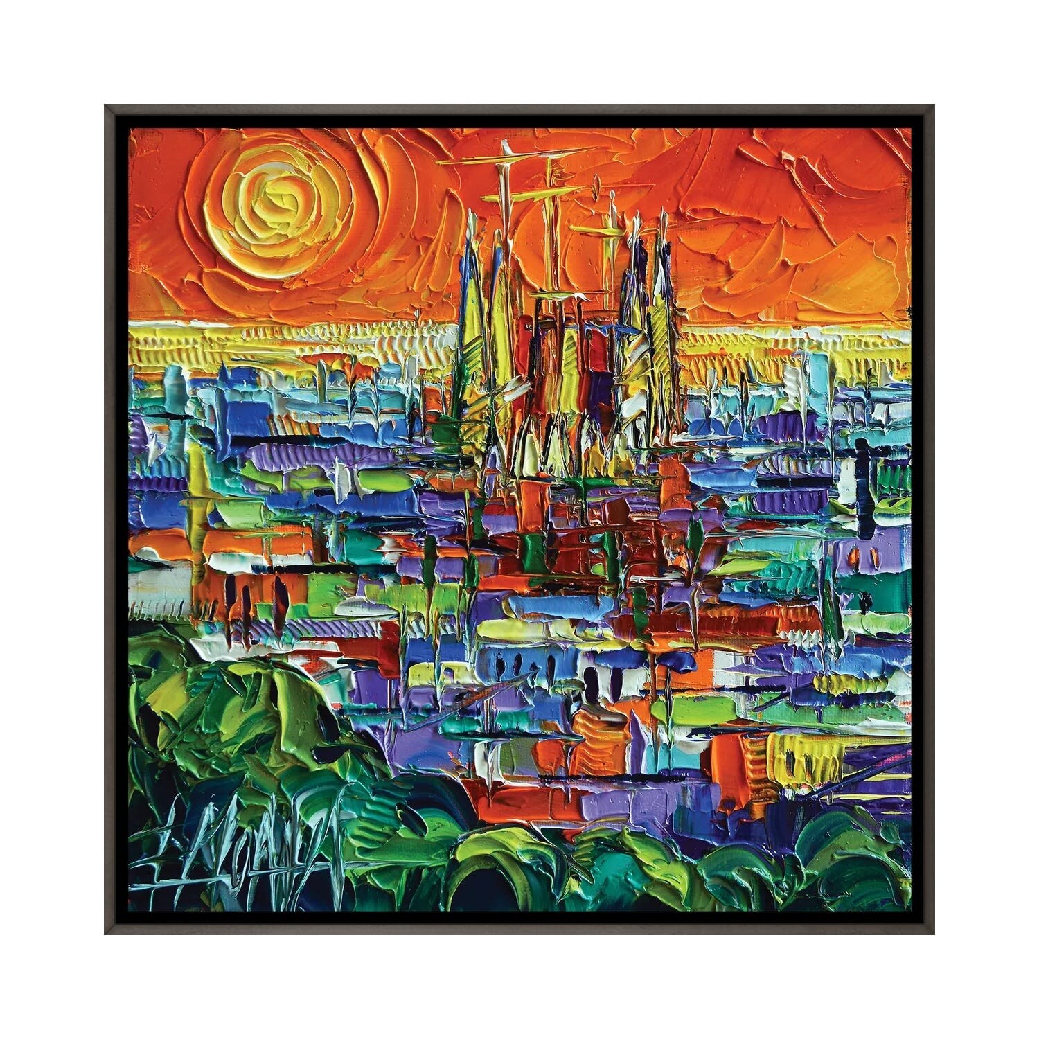 iCanvas "Barcelona View Stylized Cityscape" by Mona Edulesco Framed