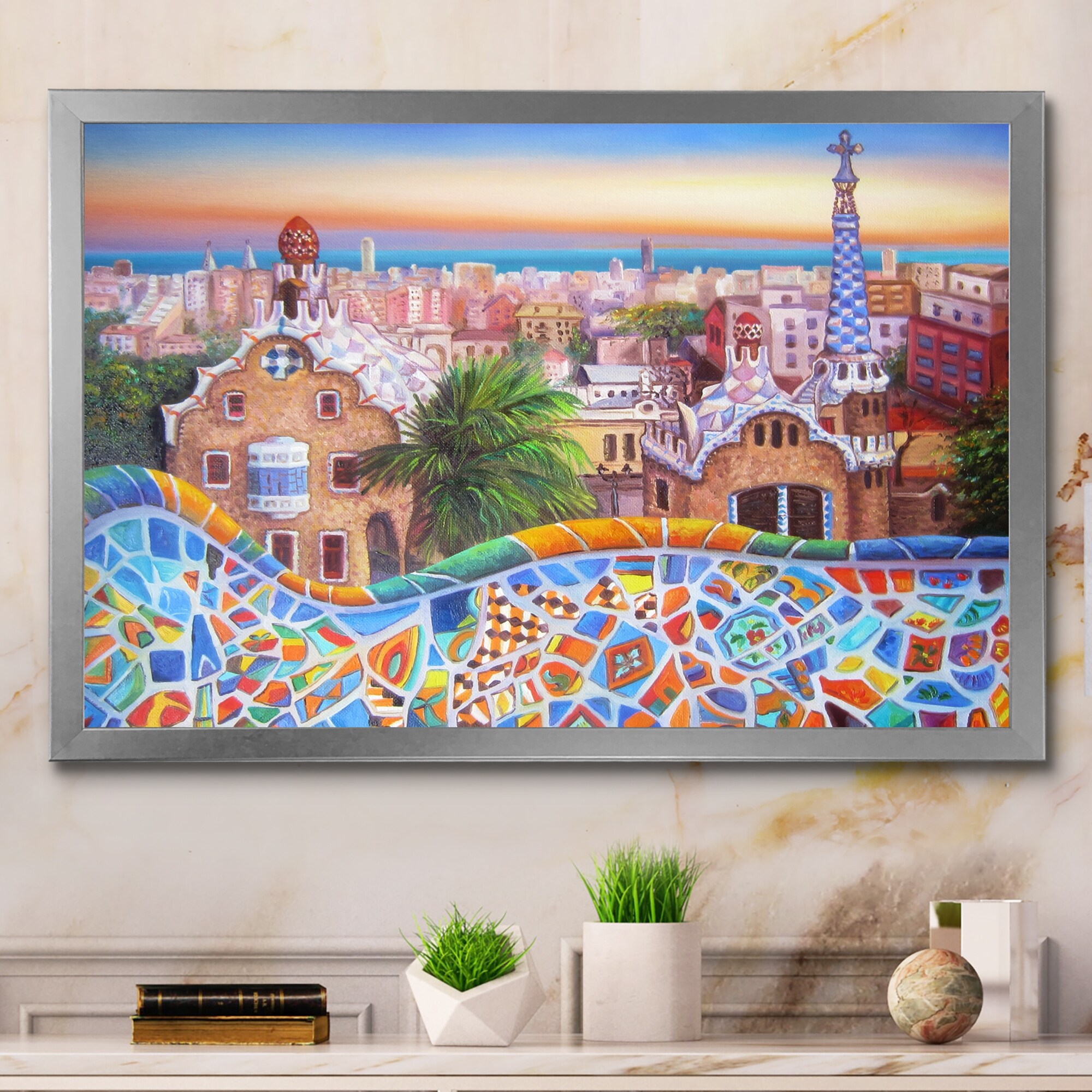 Designart "Painting Of Barcelona City" Colonial Framed Wall Decor