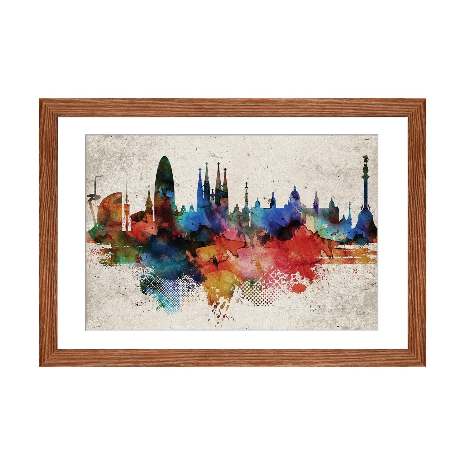 Barcelona Skyline Panorama - Cityscape Artwork Print on Canvas - Multi-color