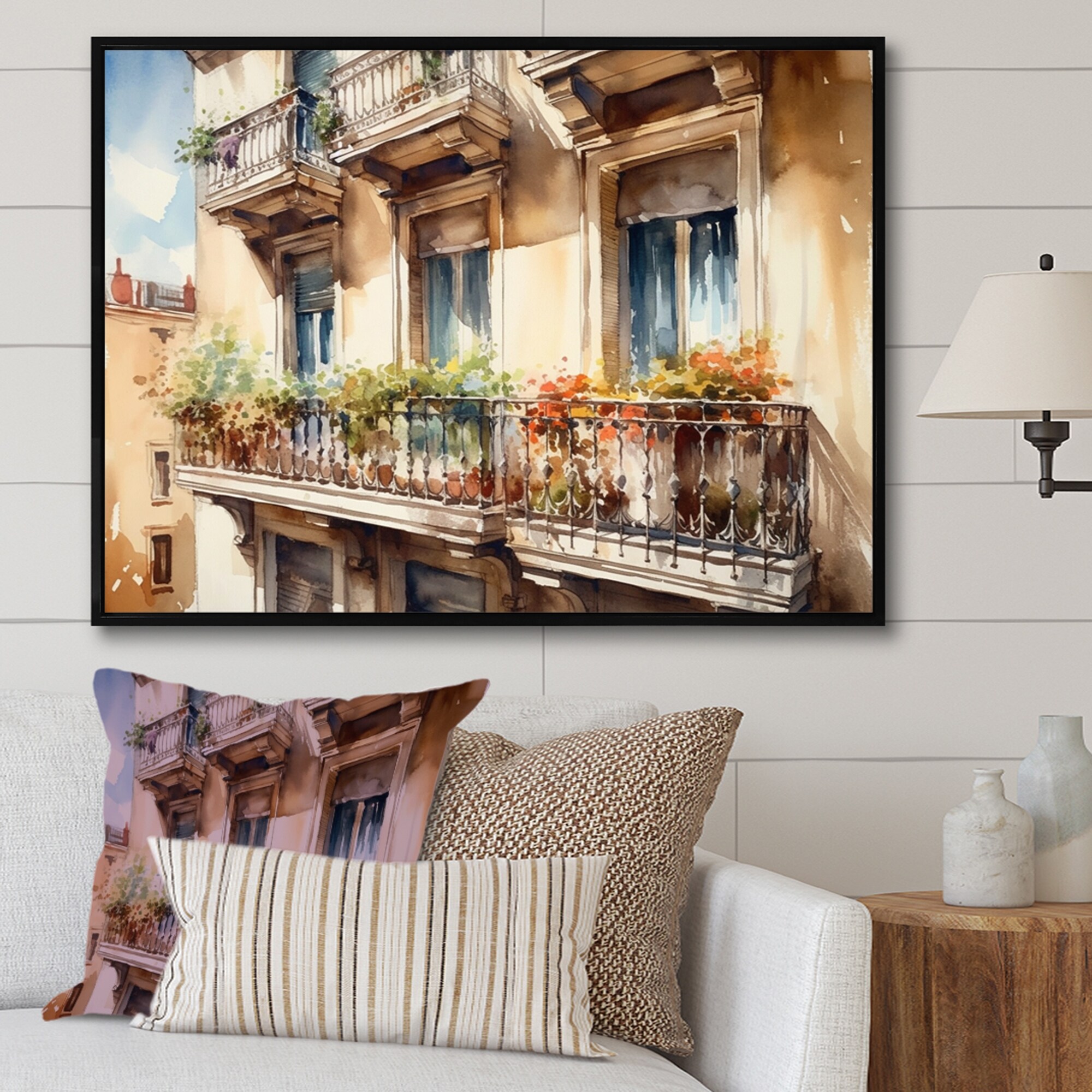 Designart "Barcelona Old World Charm I" City Art Deco Framed Canvas Print