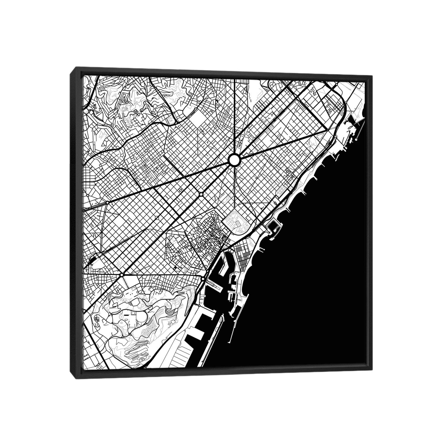 iCanvas "Barcelona Urban Map (Black)" by Urbanmap Framed Canvas Print