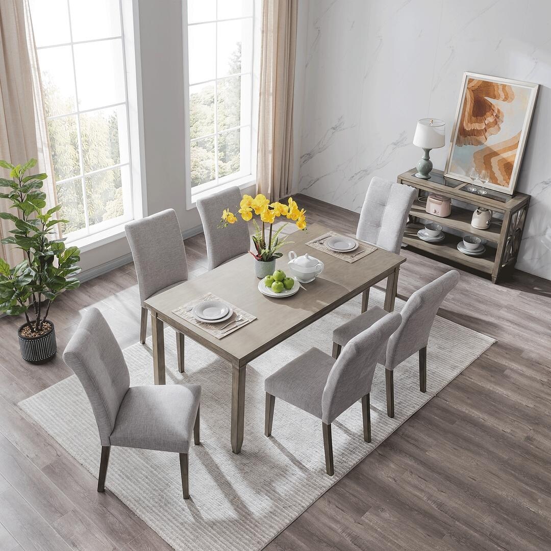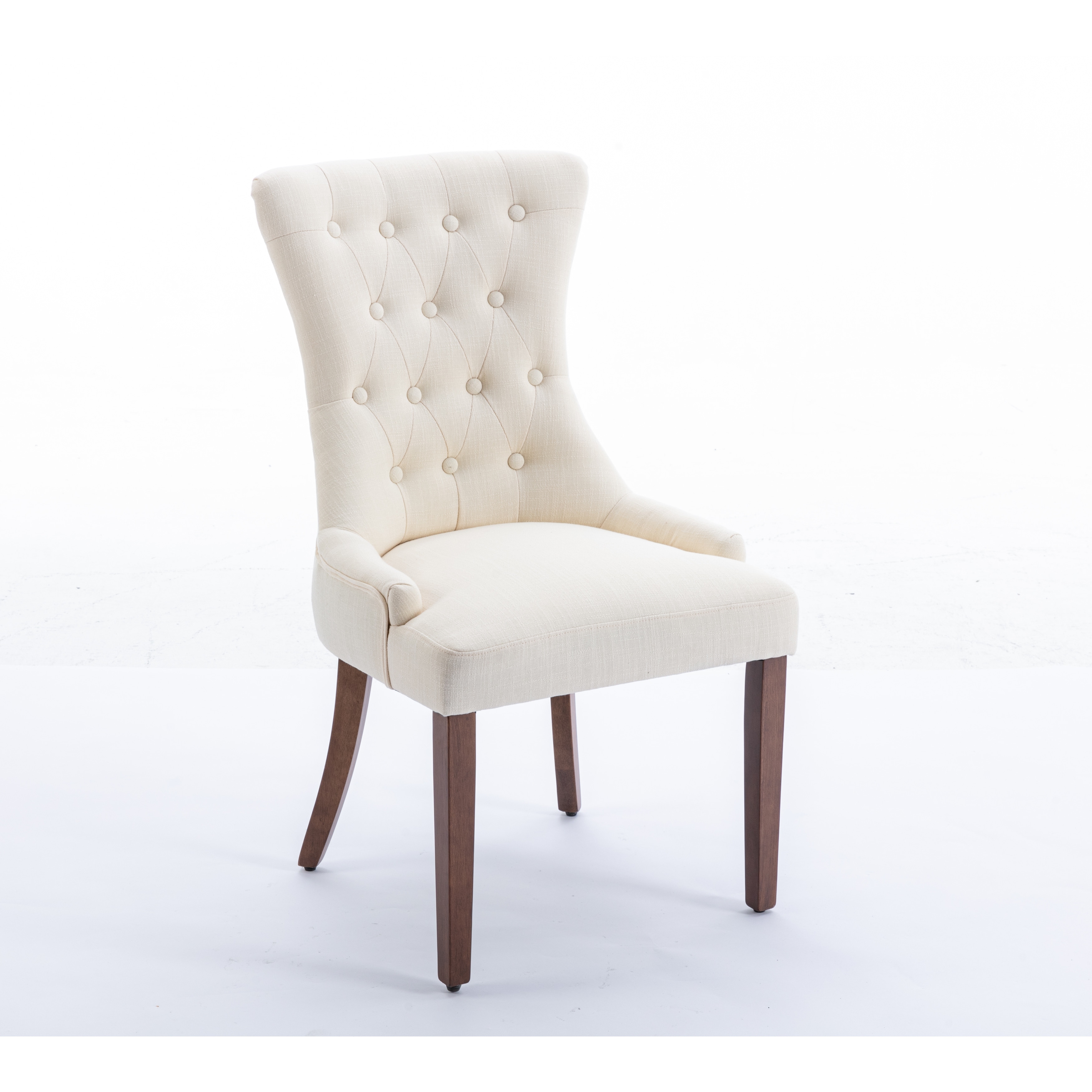 2 PCS Classic Button Tufted Beige Linen Fabric Upholstered Dining Chair with Solid Wood Legs for Kitchen Dining Room