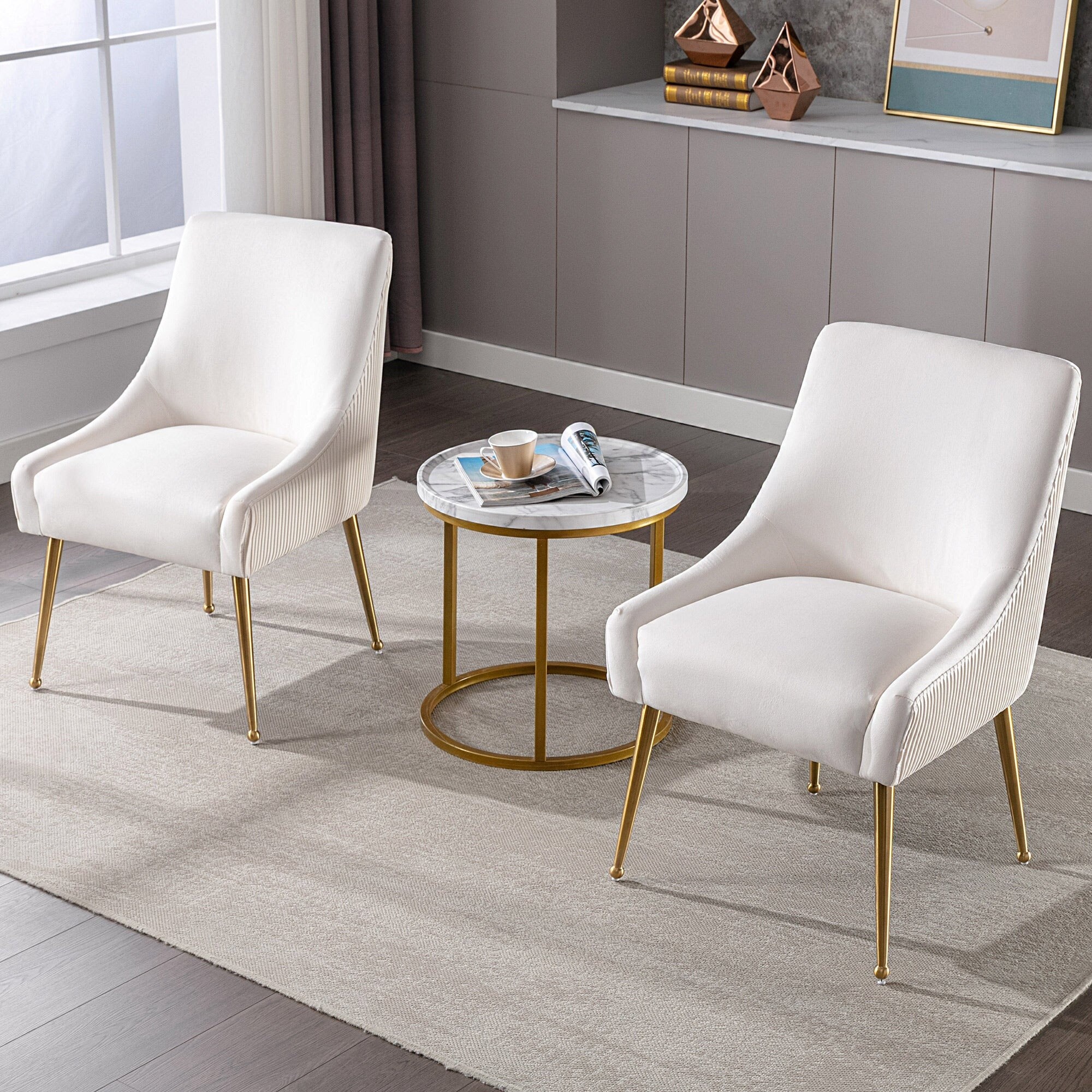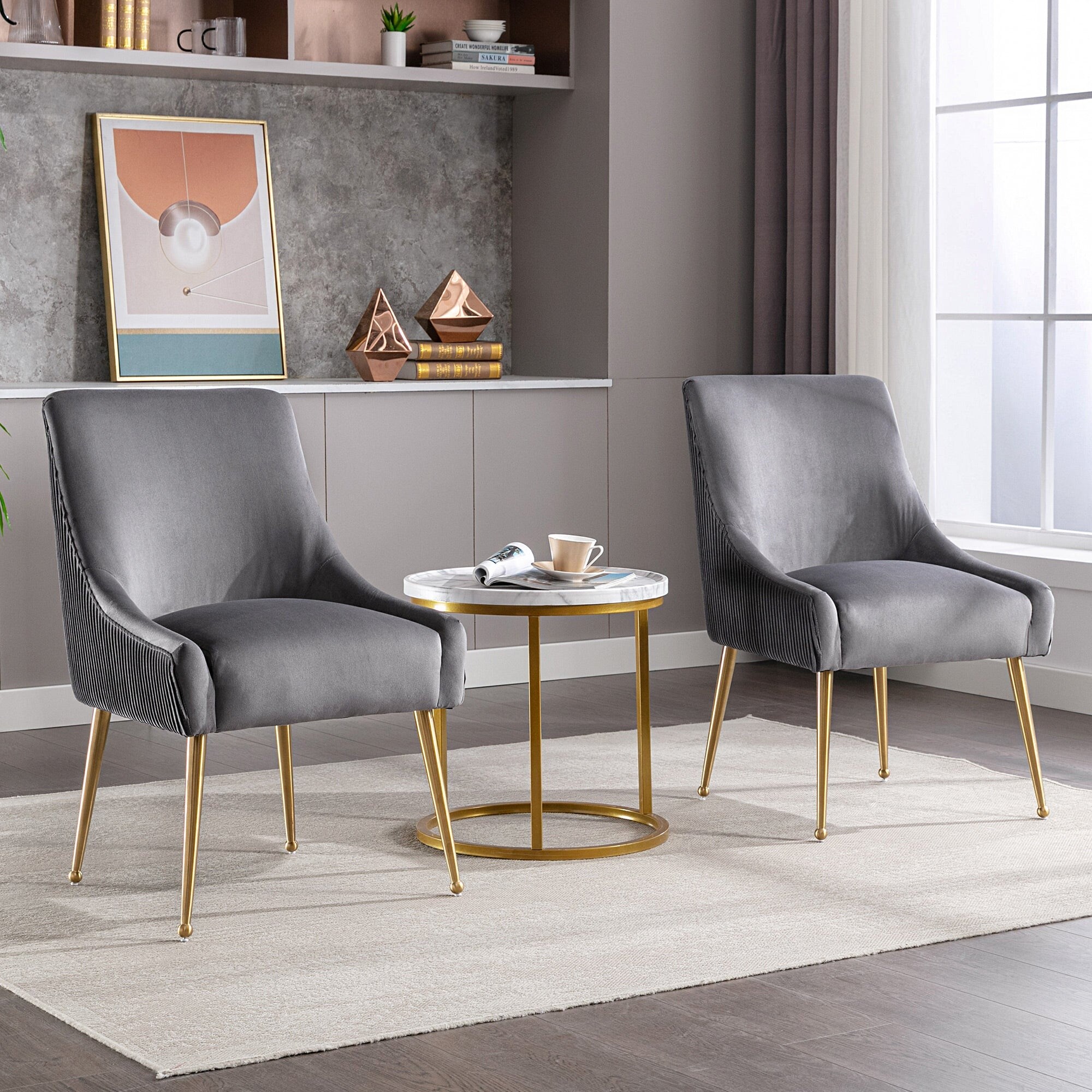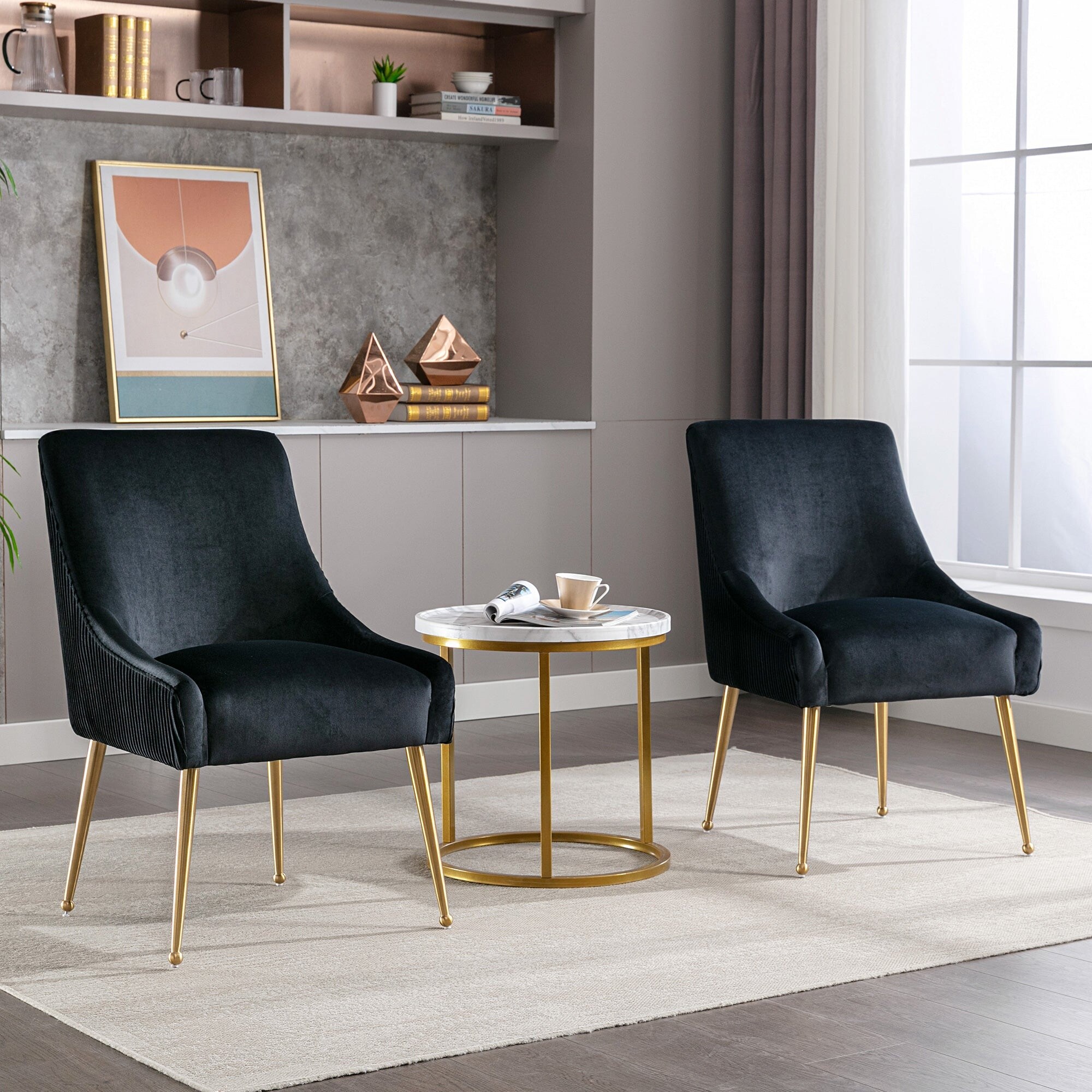 Set of 2 Dining Chairs, Velvet Upolstered Side Chair, Gold Metal Legs for Dining Room