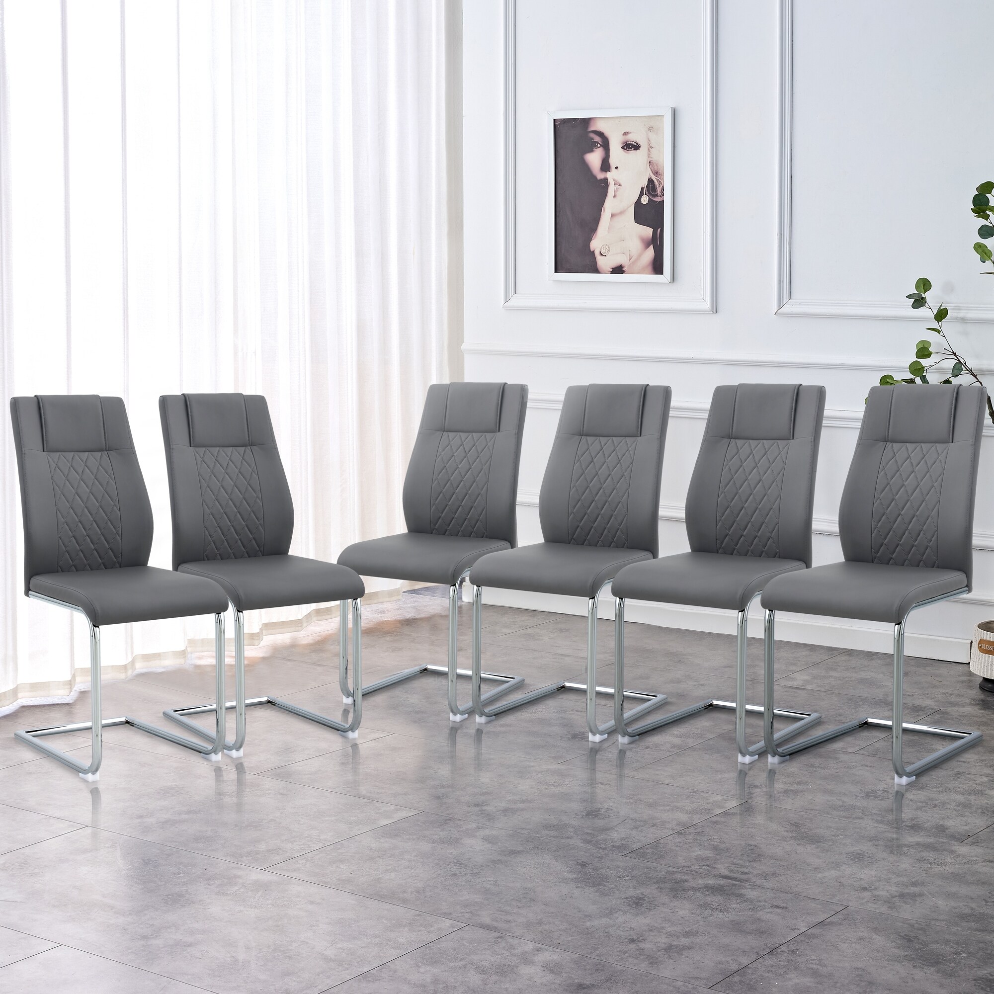 Modern Dining Chairs Set of 6, Kitchen Chairs w/Faux Leather Padded Seat and Chrome Legs for Dining Room, Kitchen, Living Room