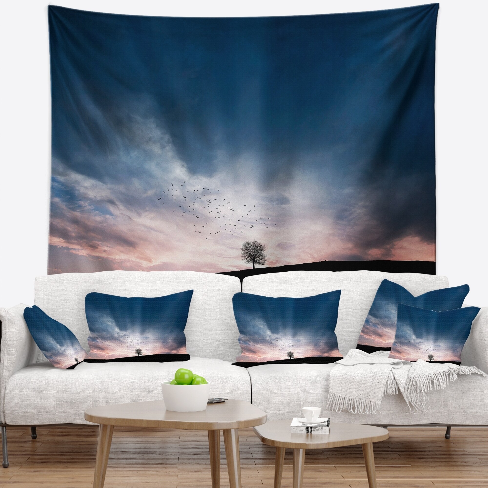 Designart 'Flock of Birds and Lonely Tree' Landscape Wall Tapestry