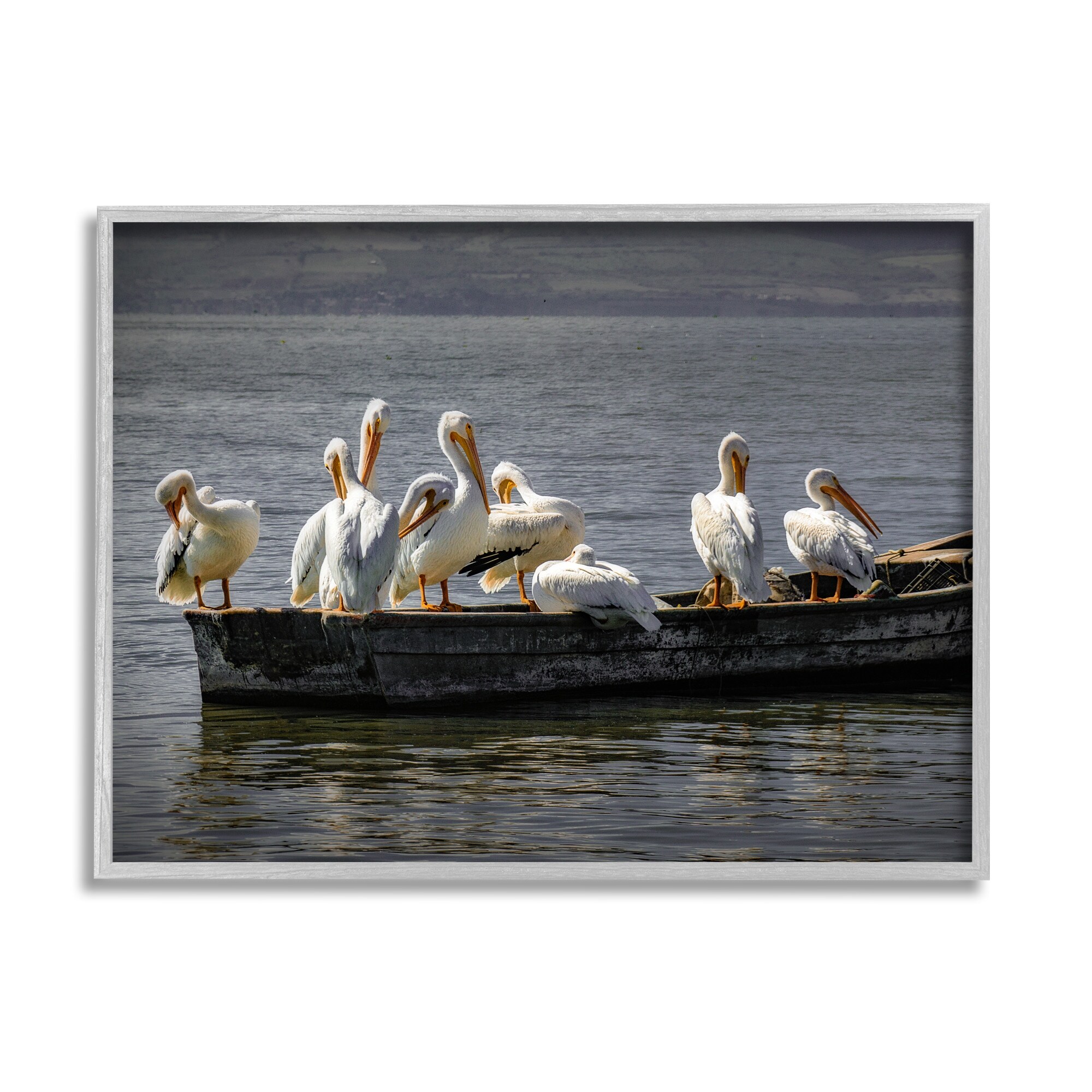 Stupell Industries Pelican Flock on Floating Lake Boat Framed Giclee Texturized Wall Art, Design By David Lorenz