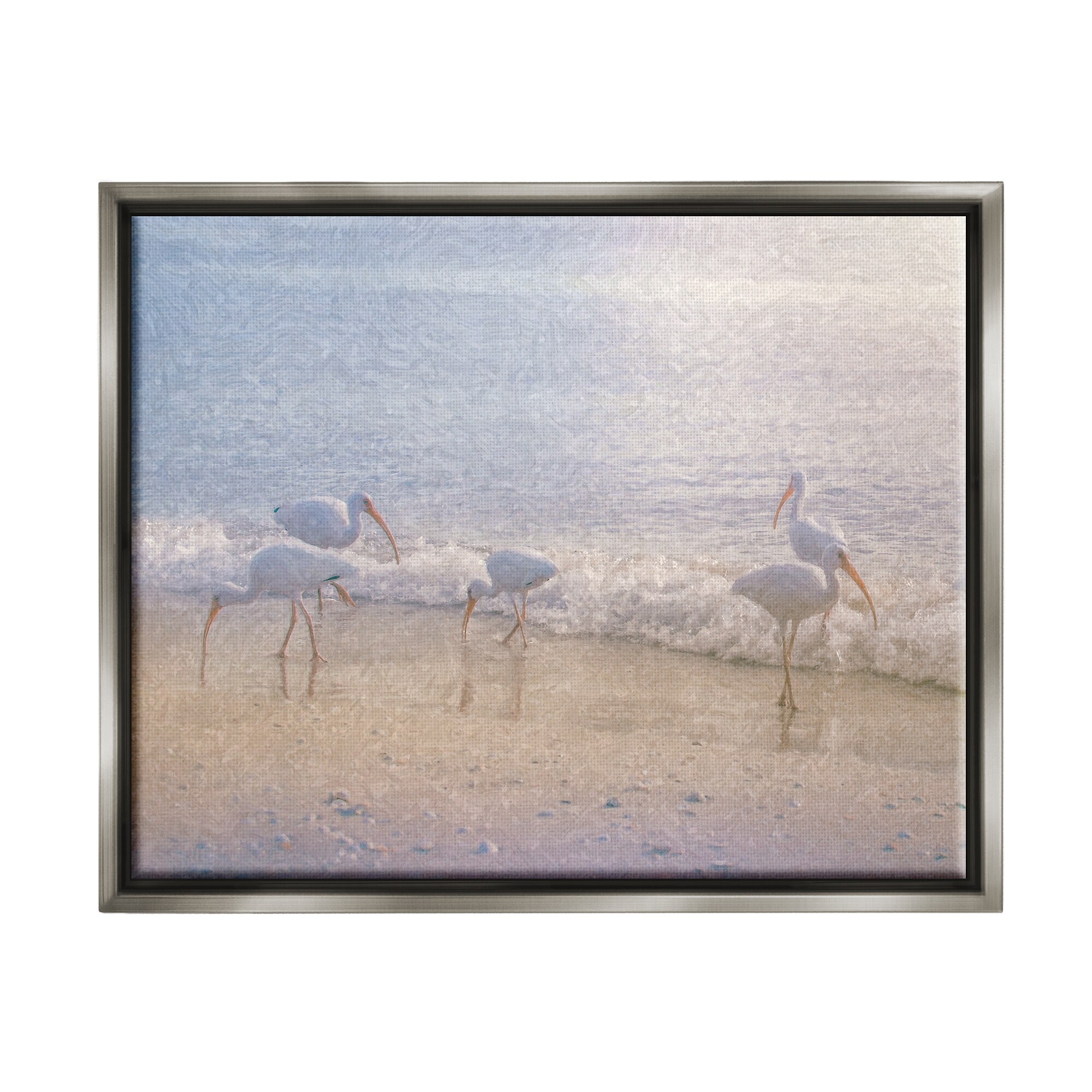 Stupell Industries Seaside Waves Bird Flock Grazing Framed Floater Canvas Wall Art by Steve Hunziker