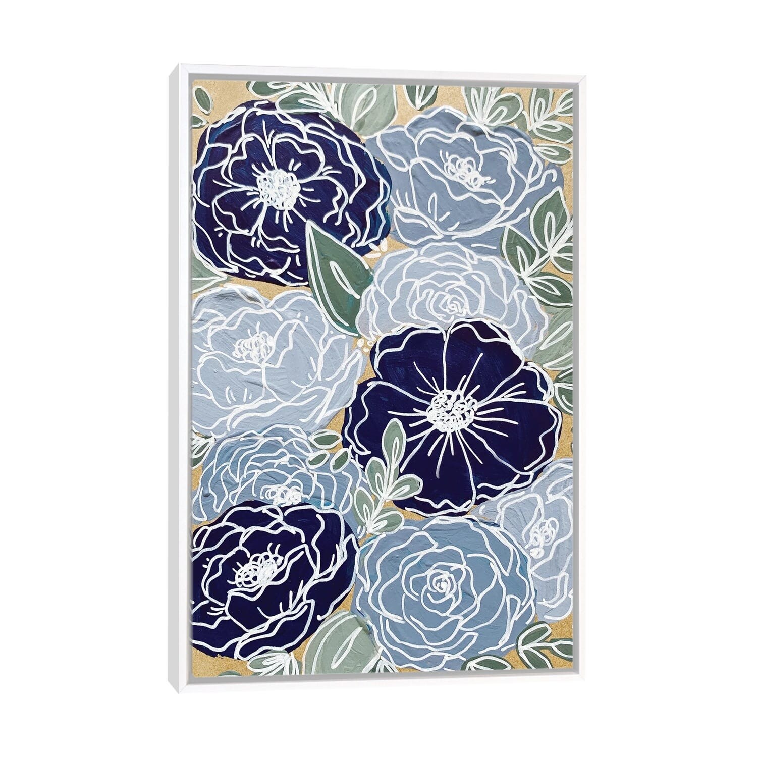 iCanvas "Blue Outlined Florals" by Katie Bryant Framed