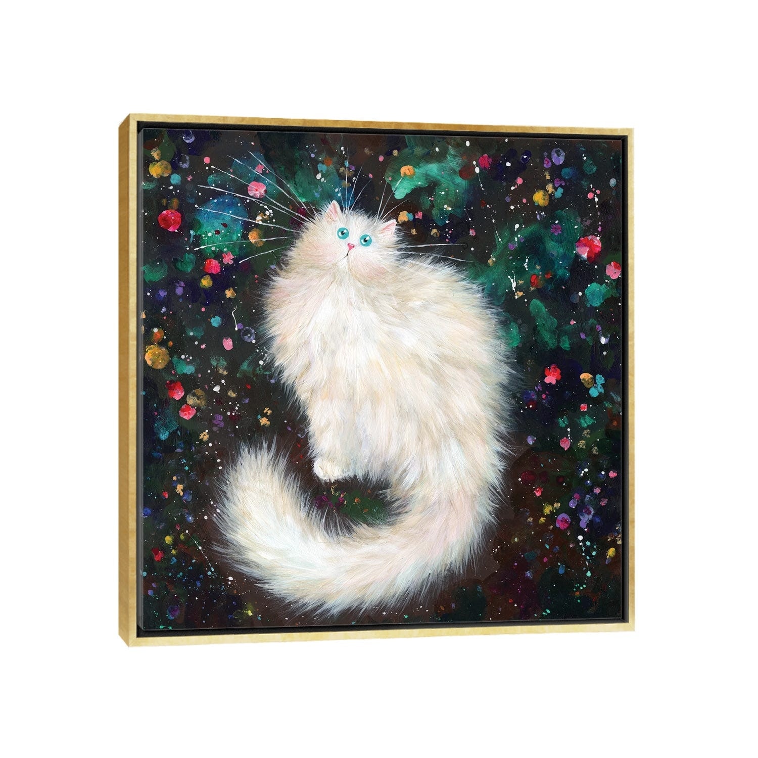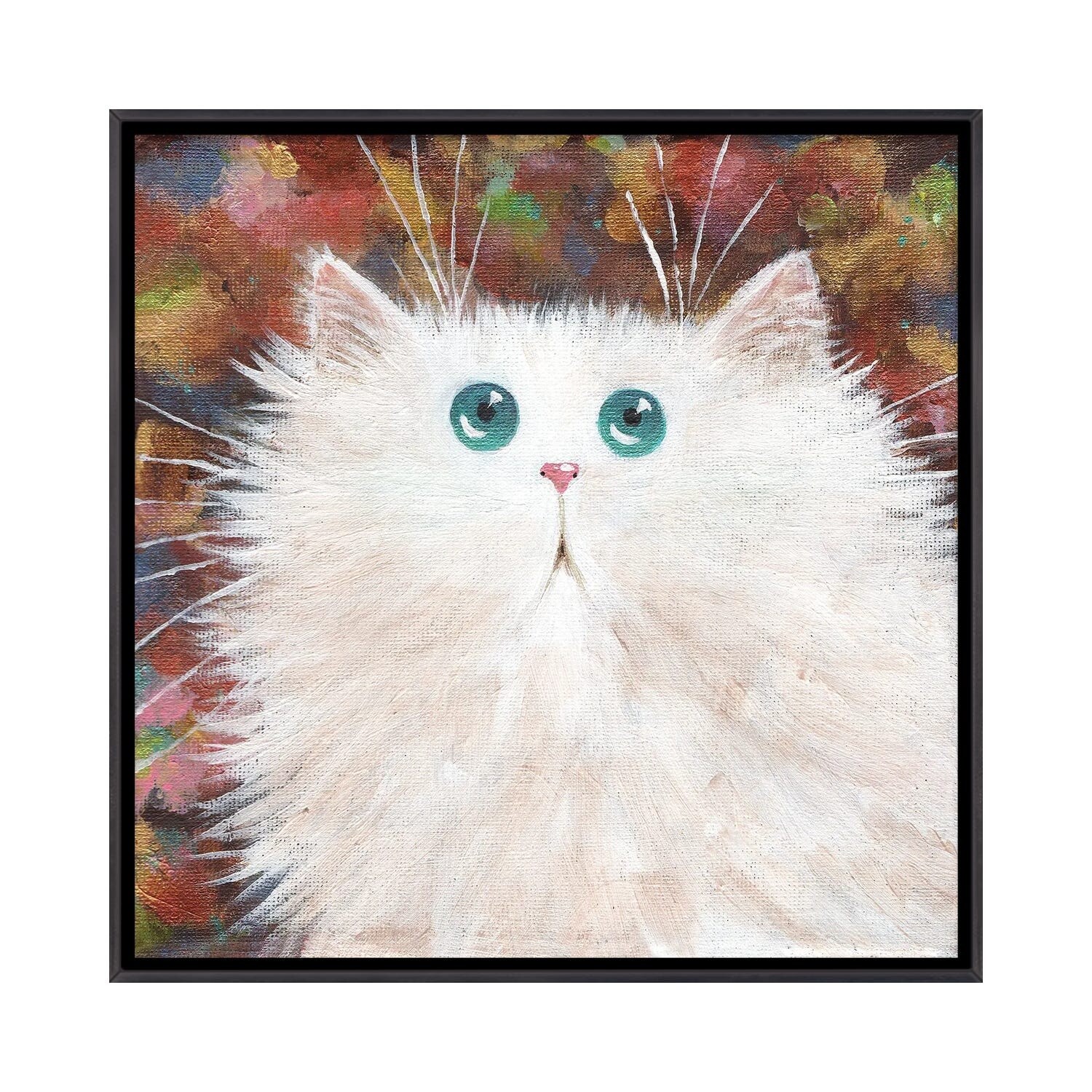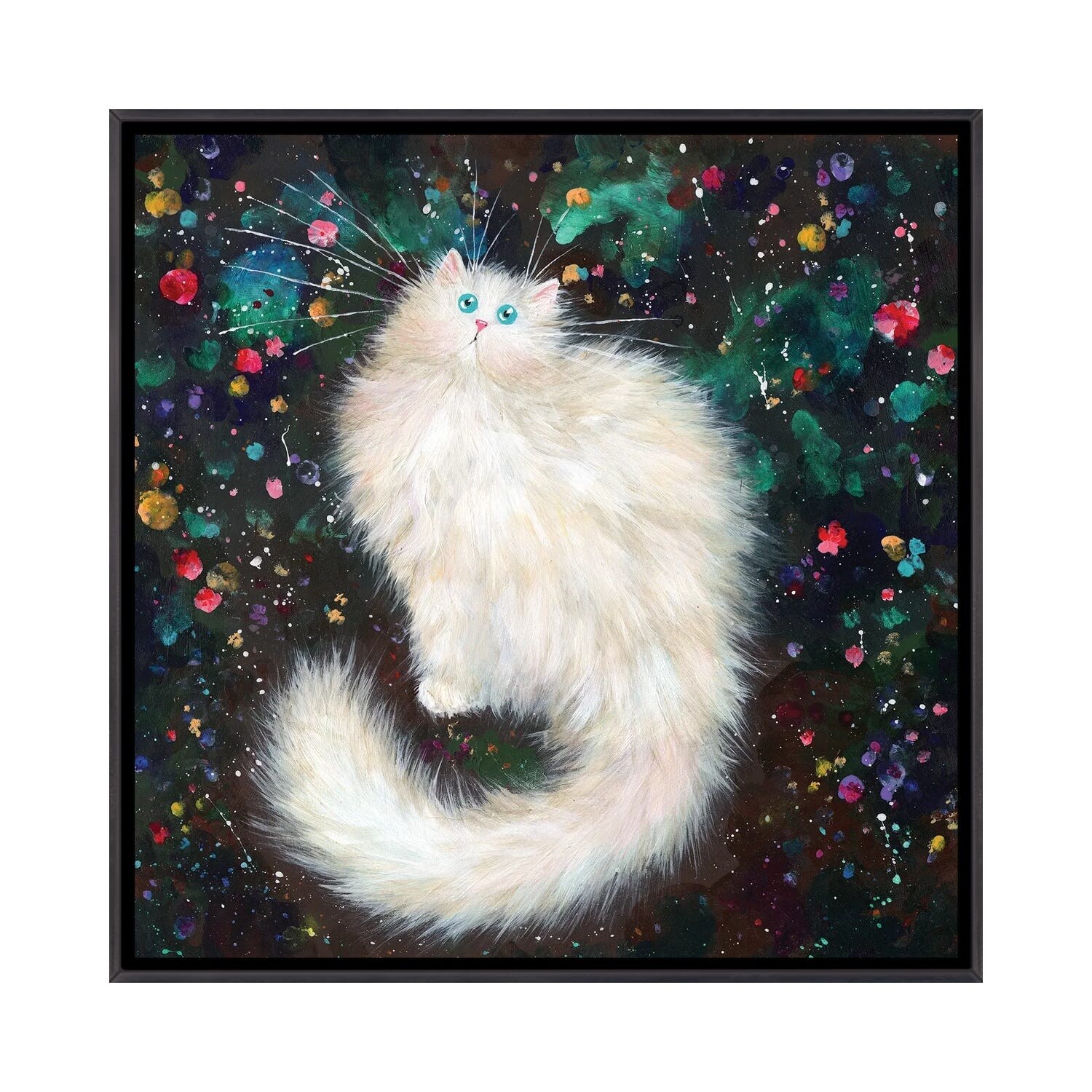 iCanvas "White Cat in Flowers" by Kim Haskins Framed