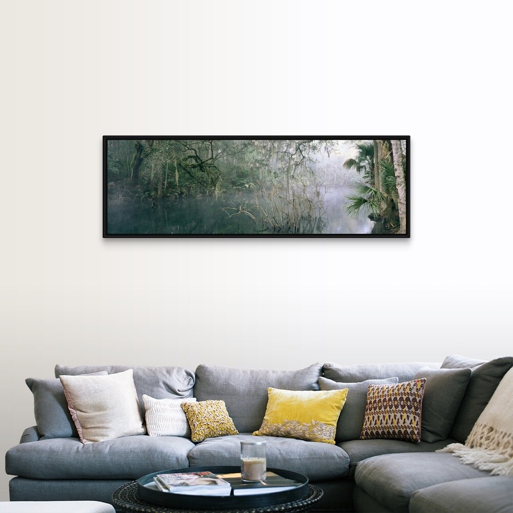 "Florida, Blue Springs State Park, View of mist over a lake in the wilderness" Black Float Frame Canvas Art