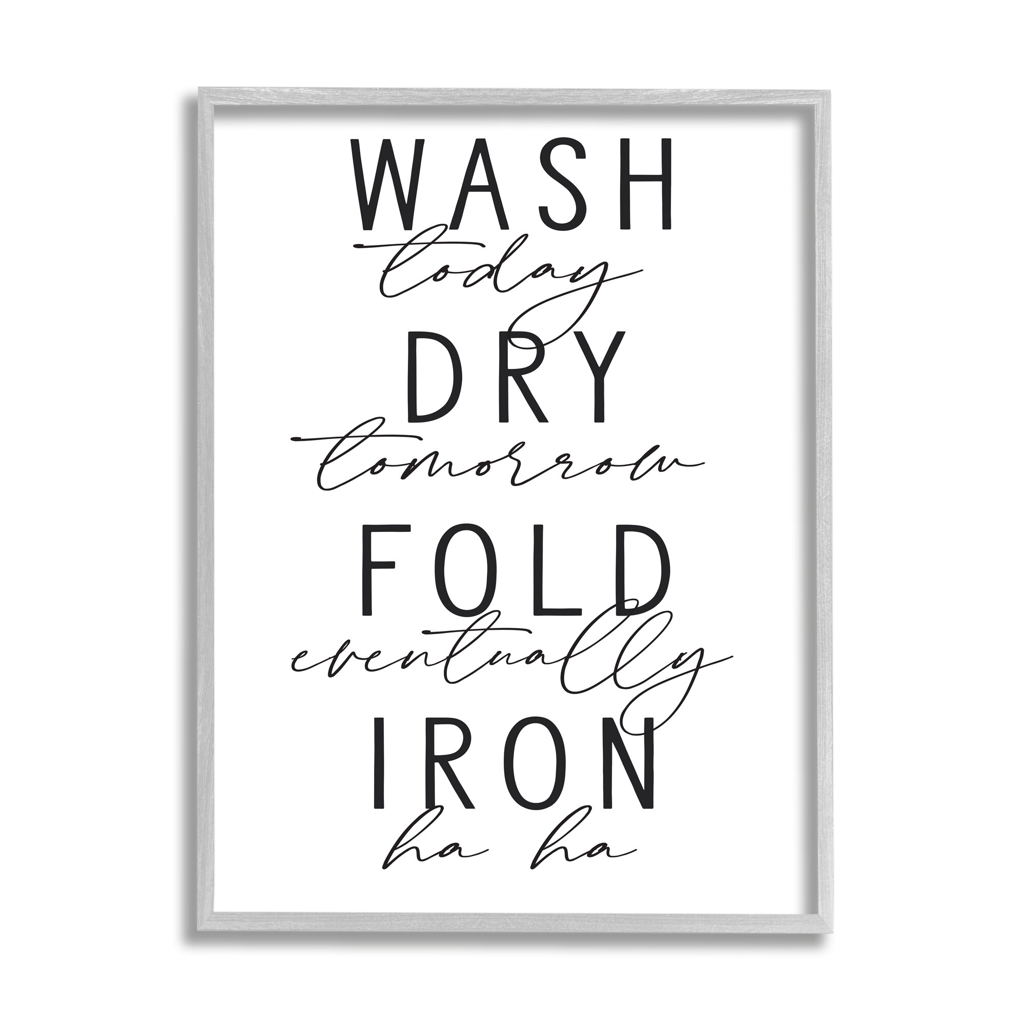 Stupell Wash Dry Fold Iron Funny Laundry Phrases Minimal Text Framed Wall Art