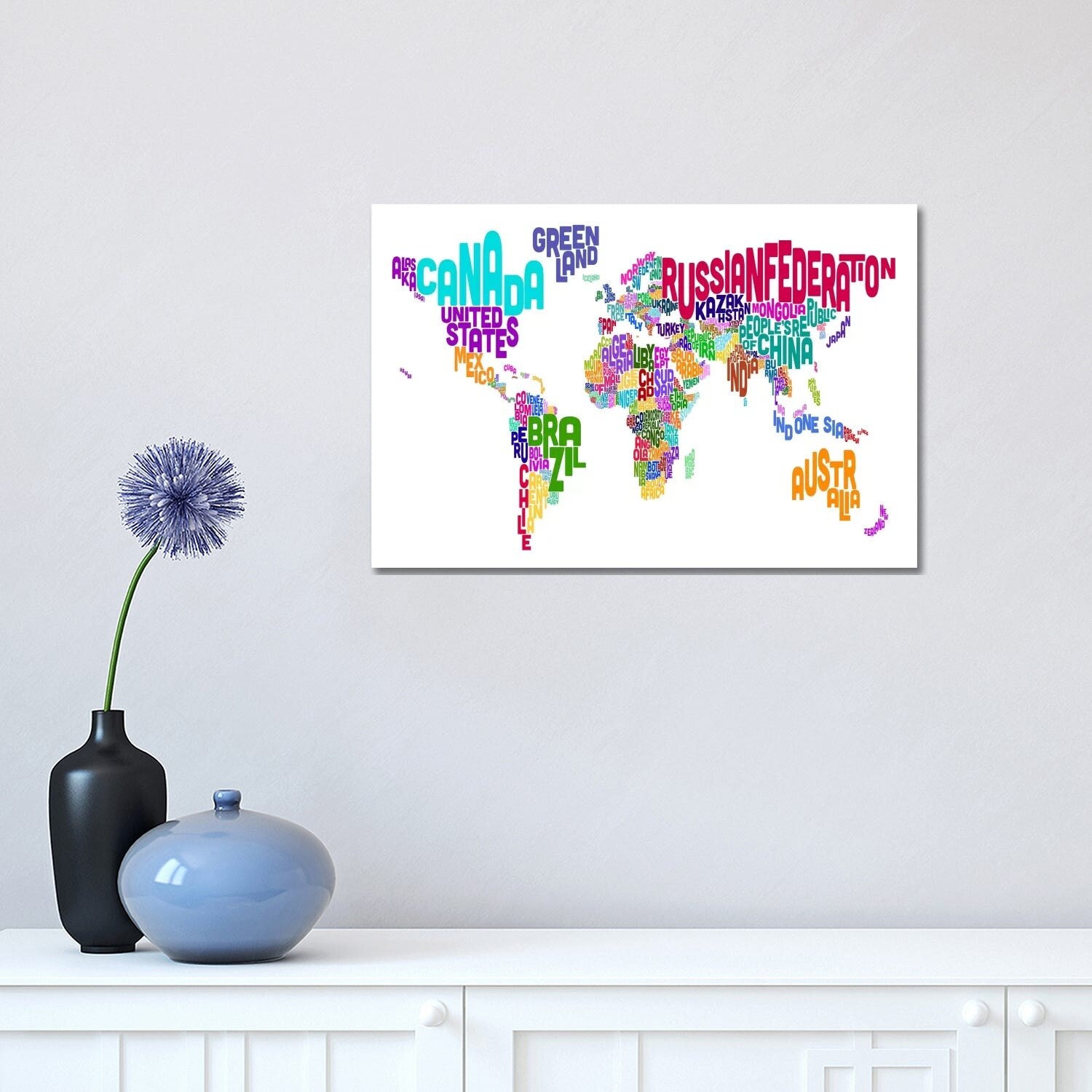 iCanvas "Typographic Text World Map VI" by Michael Tompsett Canvas Print